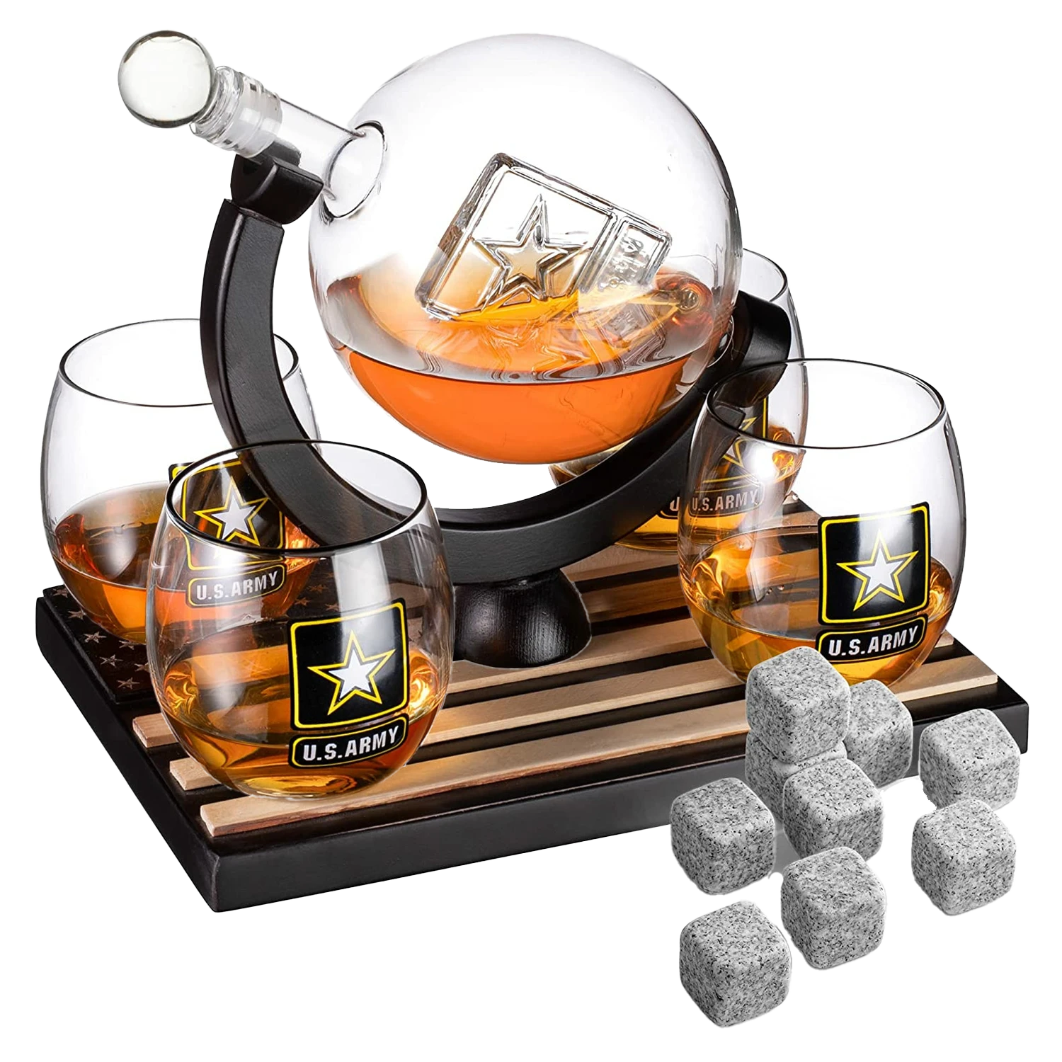 - A SALUTE TO THE US ARMY: There’s strong. Then there’s Army strong. There’s regular whiskey decanters. Then there’s the handblown Army globe decanter gift set, exclusively from The Wine Savant. Showcase your Army Strong lifestyle and military family heritage with this stunning tribute to soldiers the world over, from active-duty service members to decorated veterans. A classy gift for birthdays, Veteran’s Day, Mother’s Day or Father’s Day