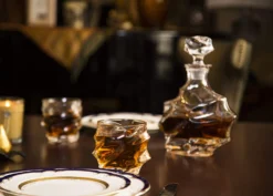 The Wine Savant Wine And Whiskey Mountain Decanter With 4 Glasses And Wood Tray 750 ML