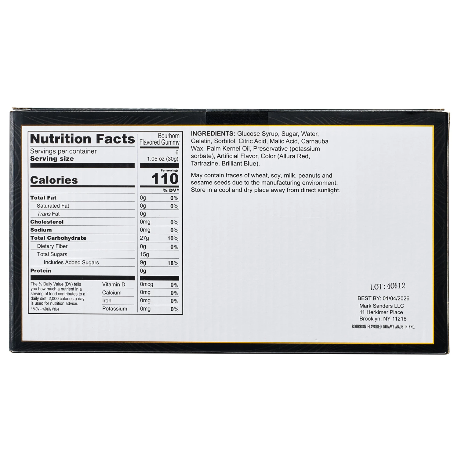 - The bourbon-flavored gummy bears offer a delightful twist on traditional candy, infused with the rich and smoky taste of bourbon. Each bite captures the essence of a classic bourbon, making these gummies a delicious treat for any whiskey fan. Perfect for snacking during a whiskey tasting or simply enjoying on their own, these gummies add a playful and tasty element to this sophisticated set.