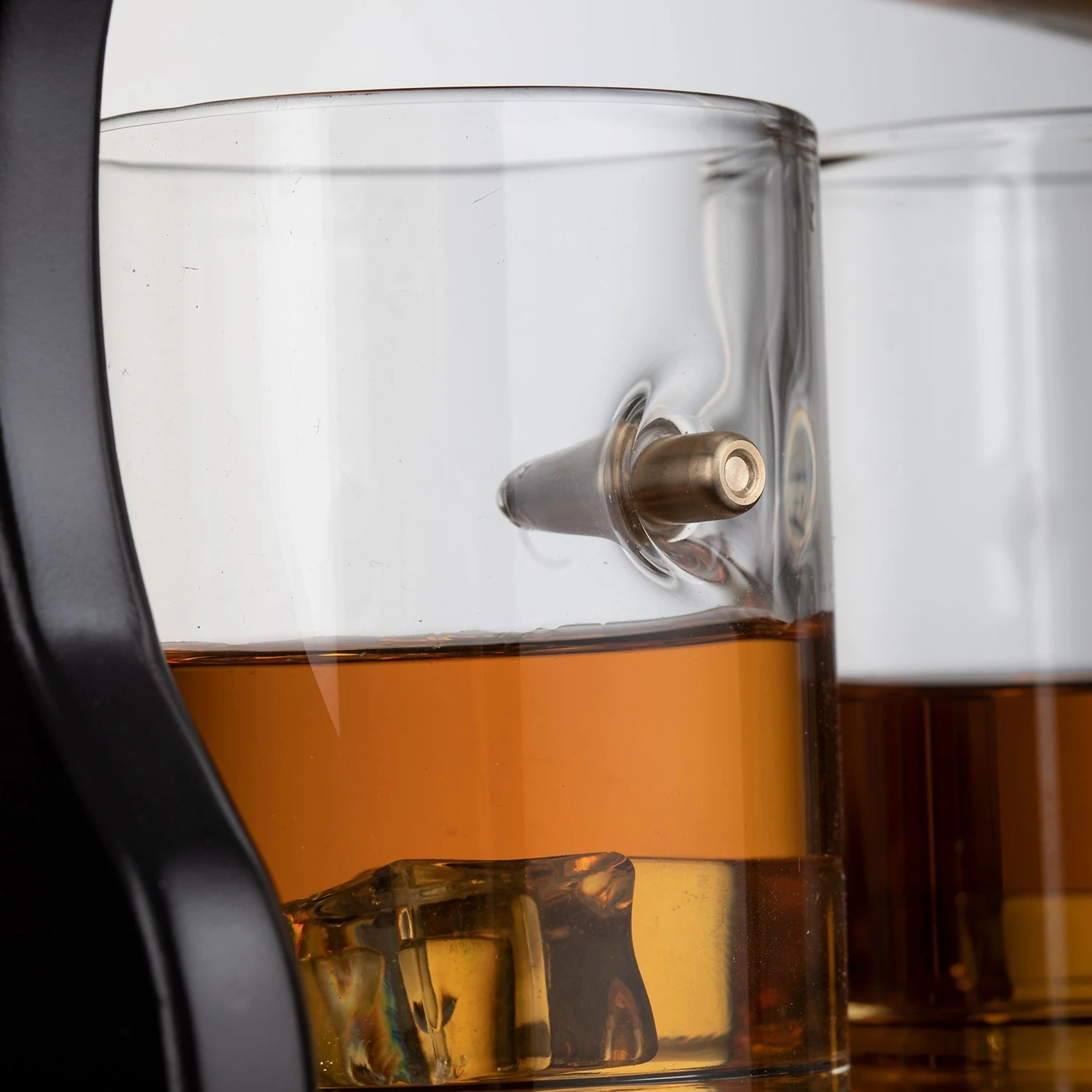 PROFESSIONAL QUALITY BULLET WHISKEY GLASSES AND CLASSIC LOOK: Four Handcrafted 15 oz Whiskey Glasses and 4 lead free bullets lodged in the glasses. Bullets do not contain gunpowder. Because only the finest materials are used to make these glasses, please hand-wash only
