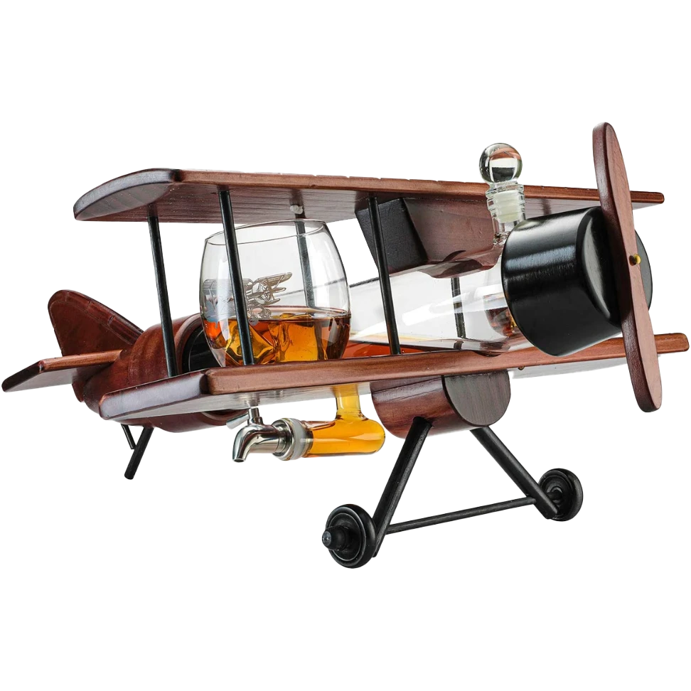 - Schöner Dekanter: Das antike Flugzeug sitzt majestätisch auf seinen beweglichen Rädern in der Mitte mit Stil und Anmut. Dies macht ein schönes Zuhause, eine Bar oder ein Bürostück. Das mundgeblasene Glas ist bleifrei und strahlt mit Klarheit.
