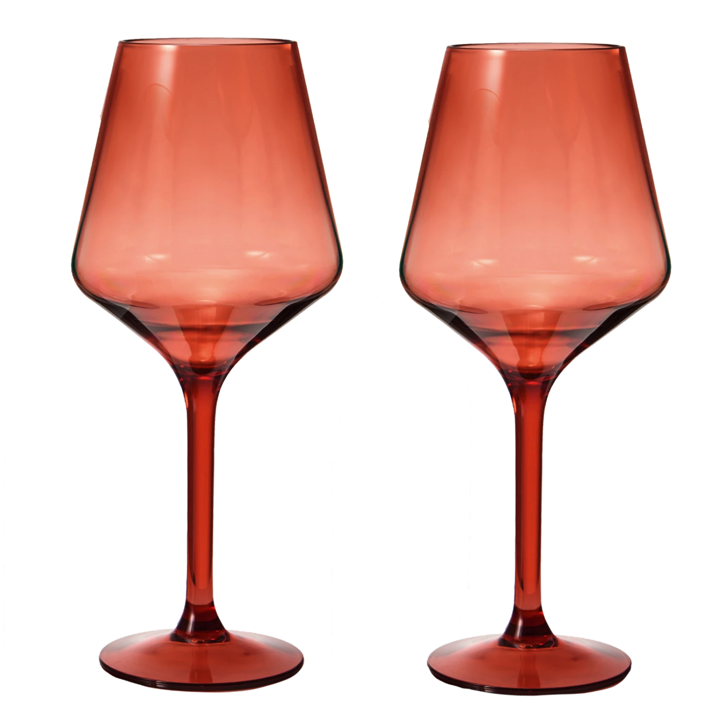 - If you are looking for a stylish and practical way to enjoy your favorite wine outdoors, then the acrylic floating wine glass set with a muted red color is an excellent choice. This set includes two 15-ounce wine glasses that can float in water, making them ideal for poolside cocktails, beach days, or boating adventures. They are perfect for the upcoming warm seasons, and they will add a touch of elegance to any outdoor occasion.