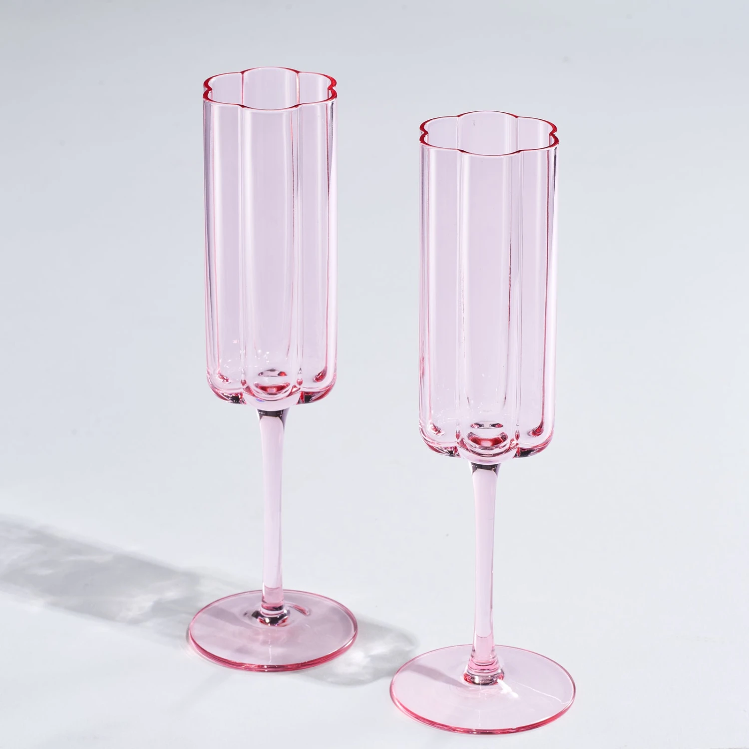 - In addition to being a stunning addition to your glassware collection, the Pink Flower Champagne Flutes make an exceptional gift for any champagne lover or flower enthusiast. Whether you’re surprising a friend with a birthday gift or treating yourself to a touch of elegance, this set is sure to impress. It’s a perfect choice for weddings, anniversaries, or any special occasion that calls for a toast.