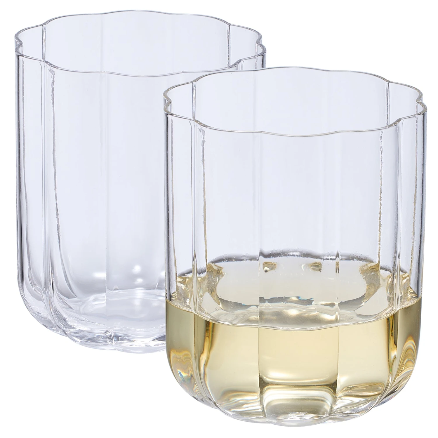 Flower Vintage Glass Stemless Highball – Set Of 2-13 Oz Colorful Cocktail, Wine, Water, Martini Glasses, Prosecco, Mimosa, Glasses Set, Bar Glassware Luster Glasses 4″ X 3″ (Clear)