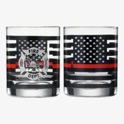 Firefighter Whiskey Glasses | Set Of 2 | 12 OZ Old Fashioned Liquor Glasses, American Flag Red Line Fire Fighter Glass – Show Support For First Responders, Firemen Gifts For Him, Dad, Boyfriend