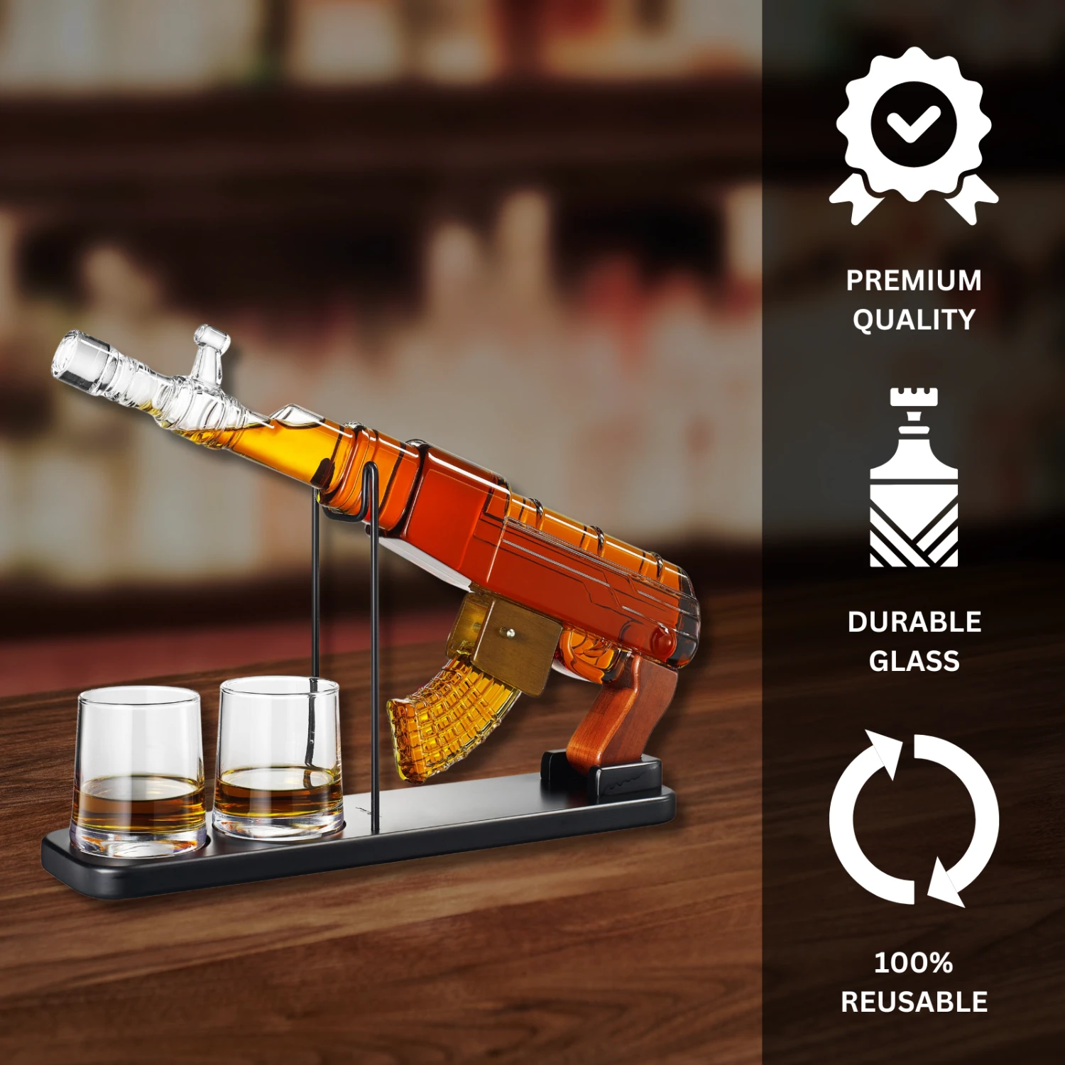 - VETERAN AND MILITARY GIFT: The AK Whiskey Decanter Set is also an excellent choice for veterans and military members. Its bold design and classic appeal make it a meaningful gift for those who have served. Whether for a veteran’s home bar or as a special memento, this decanter set is a unique way to show appreciation for their dedication and service. It’s a standout piece that embodies strength and elegance.