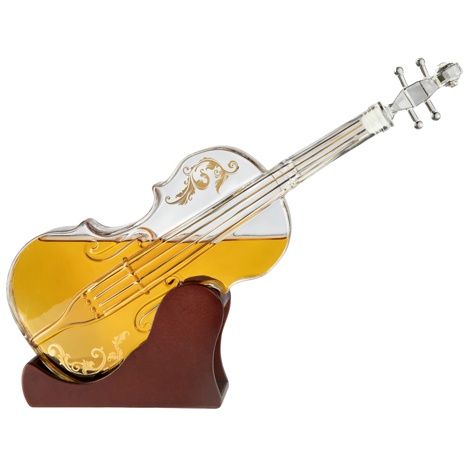 - Beautiful and elegant violin decanter. The Crystal Violin Decanter is a fine crystal decanter shaped like an elegant violin. Standing elegantly on a mahogany wooden holder.