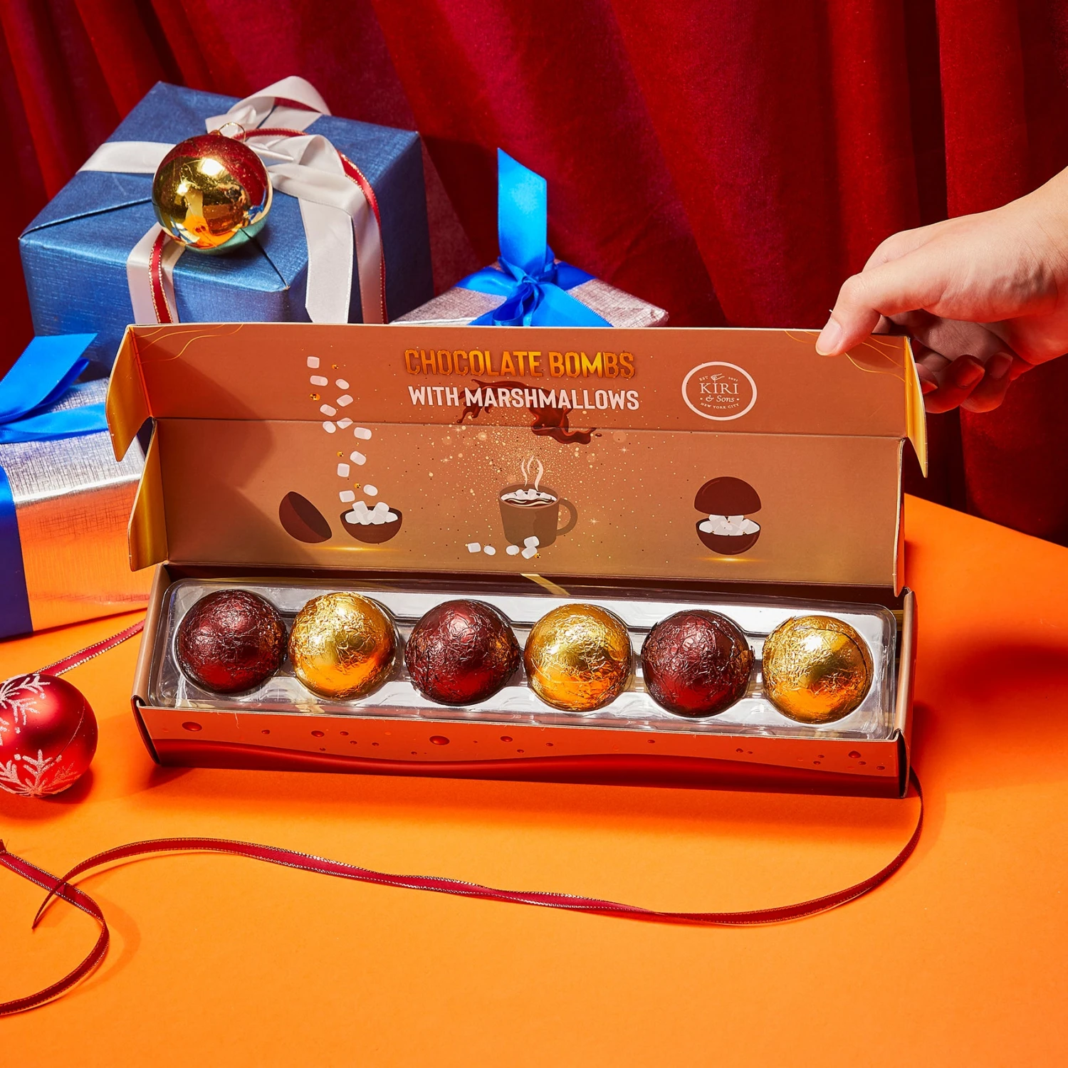 - Celebrate the frosty magic of the season with our warm and delicious Hot Chocolate Chocolate Bombs by Kiri & Sons! Guaranteed to make hot chocolate sweeter than ever. The homemade milk-chocolate shell is filled with caramel and fluffy marshmallows. Simply place the bomb in a mug of hot milk, then stir as it melts into a rich, creamy drink!