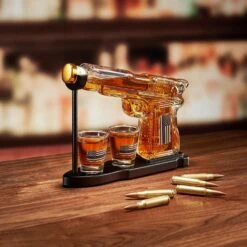 - HELMET WHISKEY GLASSES: This is truly a unique set. 100% Lead free borocislicate glass. Makes a great and unique alternative to crystal and glass decanters. It is a great conversation piece or a finishing touch for a home, bar or office. Elegant to display proudly and serve guests with.