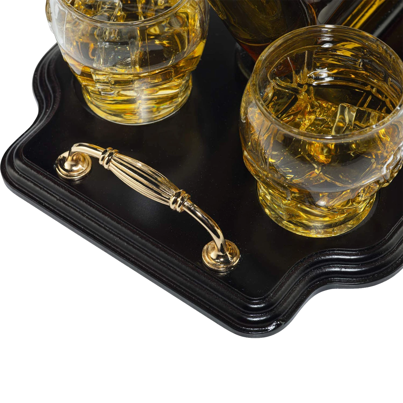 - LIMITED HOCKEY SET – WITH A BEAUTIFUL MAHOGANY WOOD HOLDER: This is a limited Edition Large Hockey Stick Decanter Set and 4 Hockey Helmet Whiskey Glasses. The Stick and glasses have many intricate parts and is exceptionally unique in design.