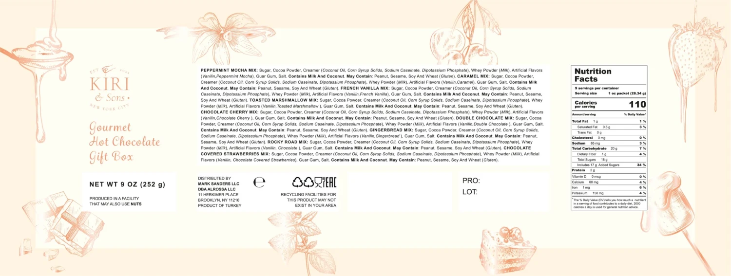 Be the first to review “Kiri & Sons Hot Chocolate Gourmet Gift Set Of 9 | 28G Per Flavor, 9 OZ Total | Flavors Include Caramel, Peppermint Mocha, French Vanilla, Gingerbread And More, Comes In Gift Box With Gold Bow” Cancel reply