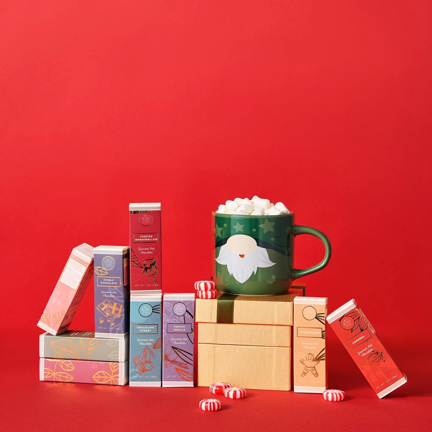 Kiri & Sons Hot Chocolate Gourmet Gift Set Of 9 | 28G Per Flavor, 9 OZ Total | Flavors Include Caramel, Peppermint Mocha, French Vanilla, Gingerbread And More, Comes In Gift Box With Gold Bow