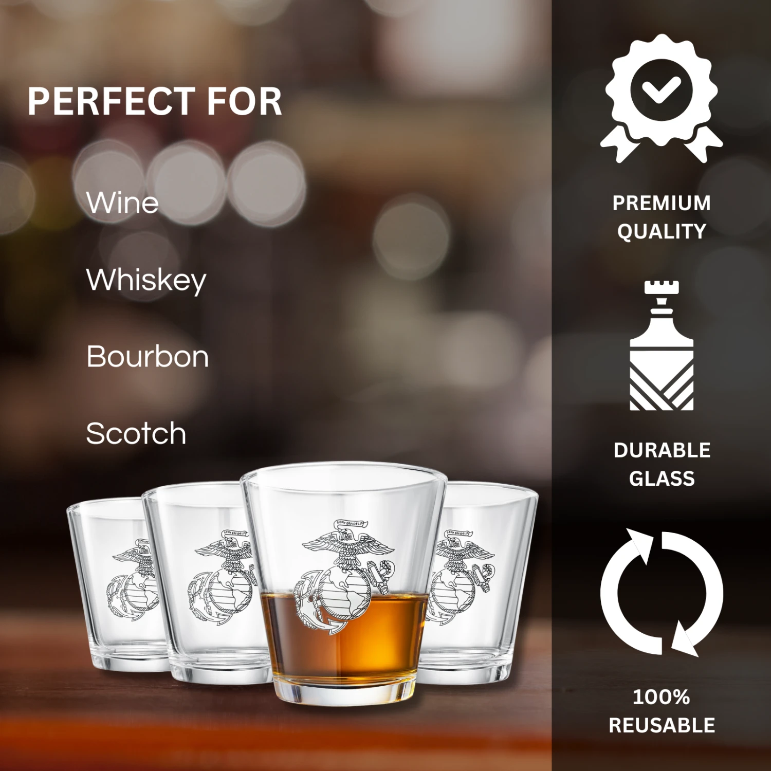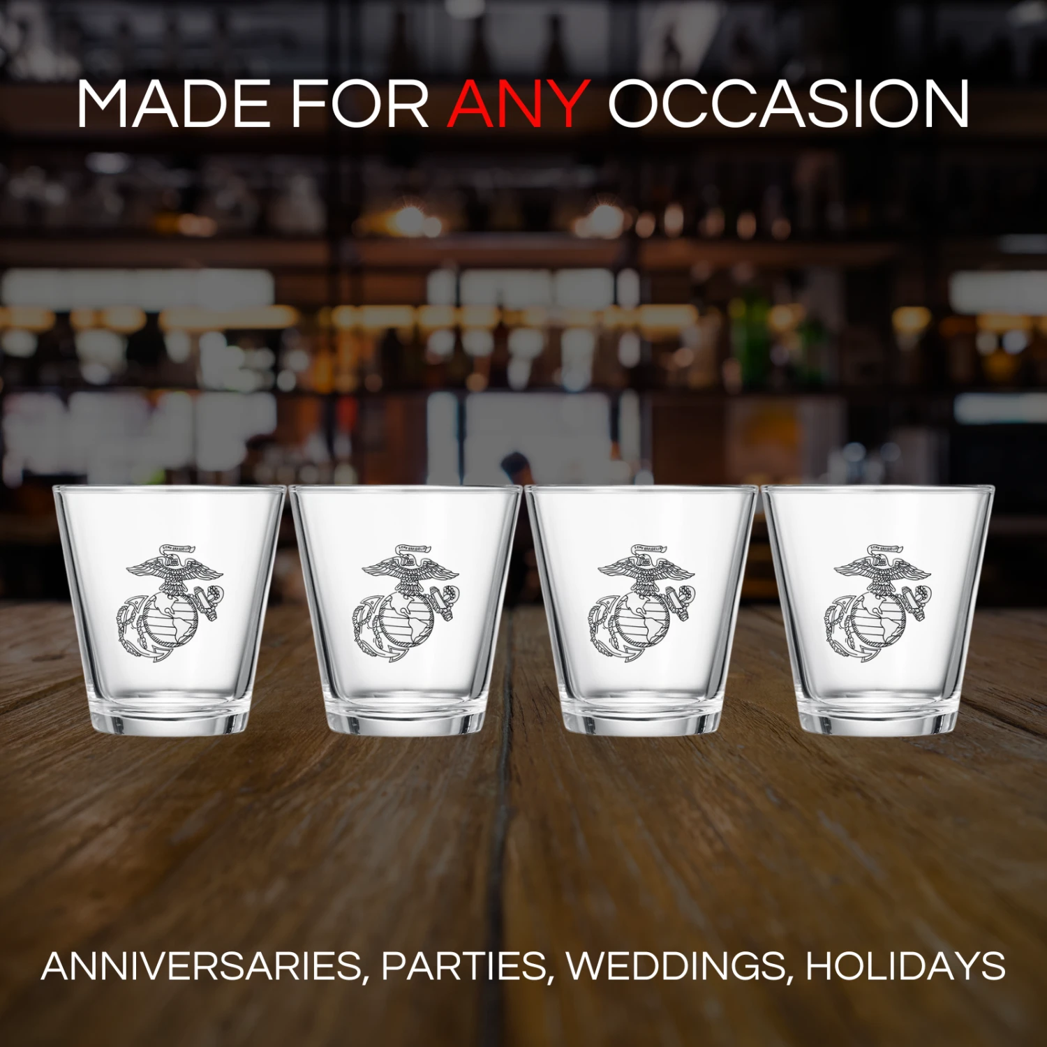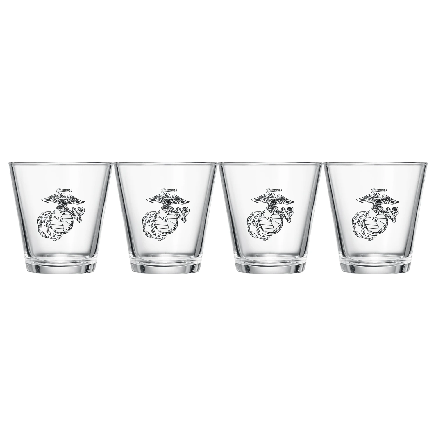 Marine USMC Whiskey & Wine Glasses Set Of 4, Anchor And Globe Whiskey Glasses 10oz Marines Gift