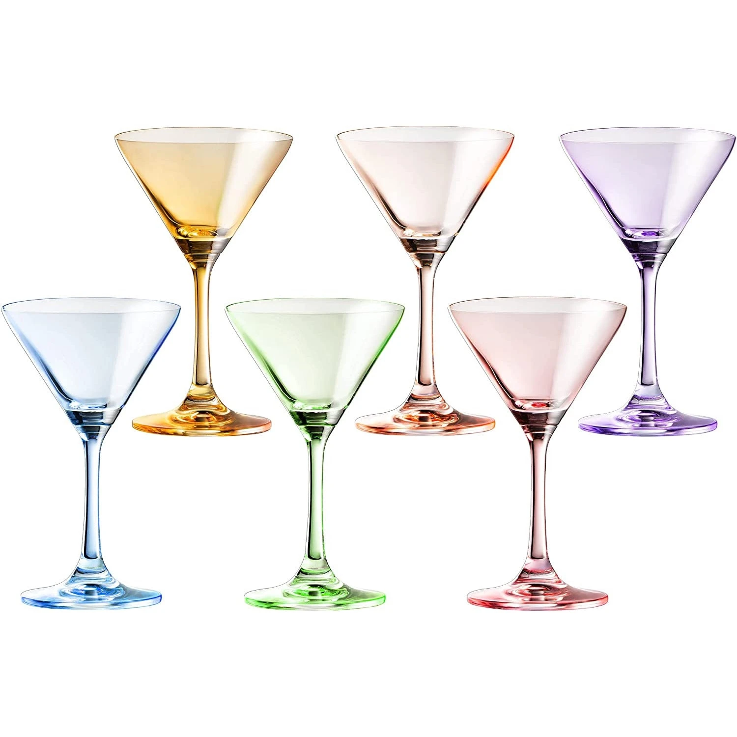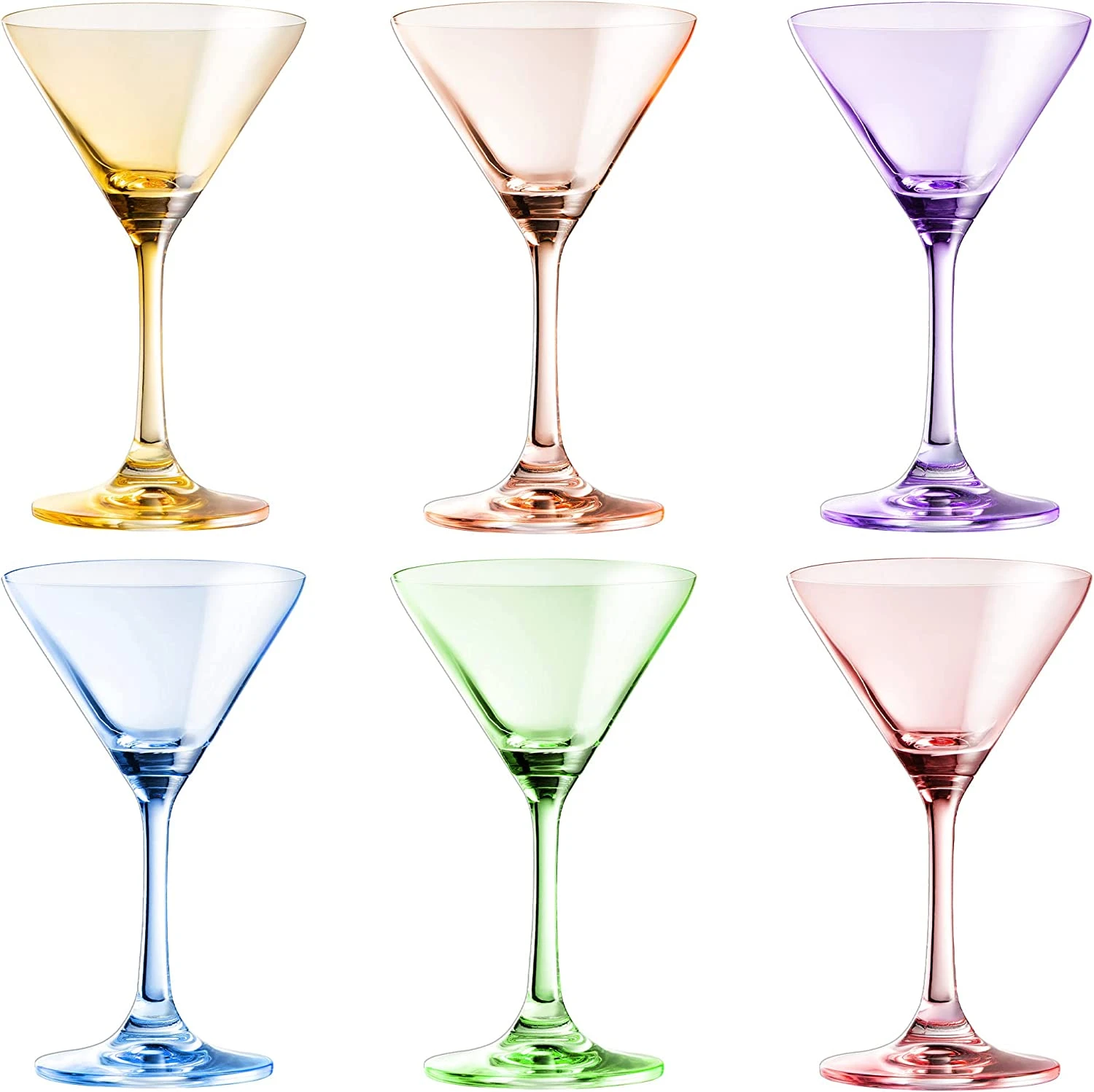 Martini Glasses Set Of 6 | 8oz | Crystal Luxury Martini Glass – Elegant Colors – Premium Hand-Blown | Art Deco Cocktail Colored Coupes For Manhattan, Cosmopolitan, Sidecar, Speakeasy – Stemmed Goblets
