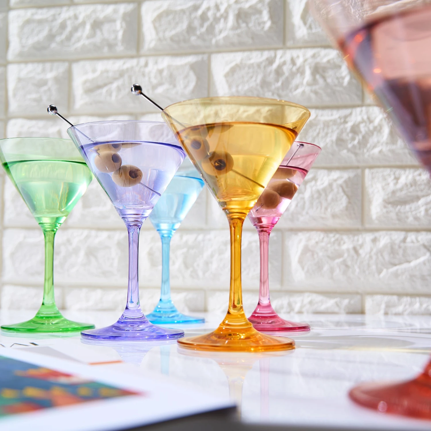 - Whether you are entertaining or just serving your favorite cocktails, these gorgeous hand-blown glassware pieces make every occasion more special. This charming set of six glasses will infuse any gathering with an elevated sense of sophistication and grace. This set is a combination of art, heritage and craftsmanship. The grace of this coupe glass set will not go unnoticed. Fashioned from hand-blown, multi-colored glass, this set will add a splash of color and elegance to your table.