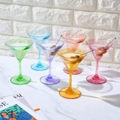 Martini Glasses Set Of 6 | 8oz | Crystal Luxury Martini Glass – Elegant Colors – Premium Hand-Blown | Art Deco Cocktail Colored Coupes For Manhattan, Cosmopolitan, Sidecar, Speakeasy – Stemmed Goblets