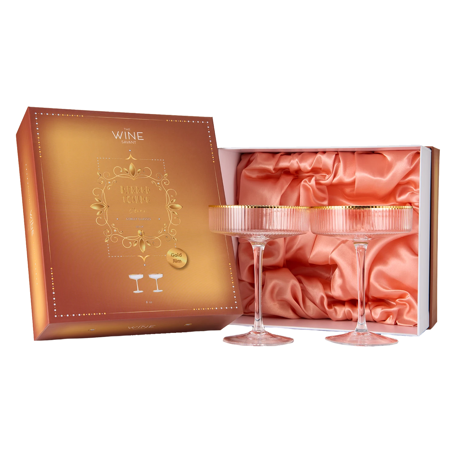 - The Wine Savant Ripple Ribbed Coupe Glasses are perfect for any bar, home, or wine tasting event. Our coupe glasses are elegantly simple with a refined shape. This oversize glass allows more room for shaking & stirring, making it perfect for creative cocktail craft, enjoying champagne, or even old fashioned drinks without leaving any room on the rim. Each glass is mouth-blown & handcrafted using traditional techniques, adding unique character to each piece.
