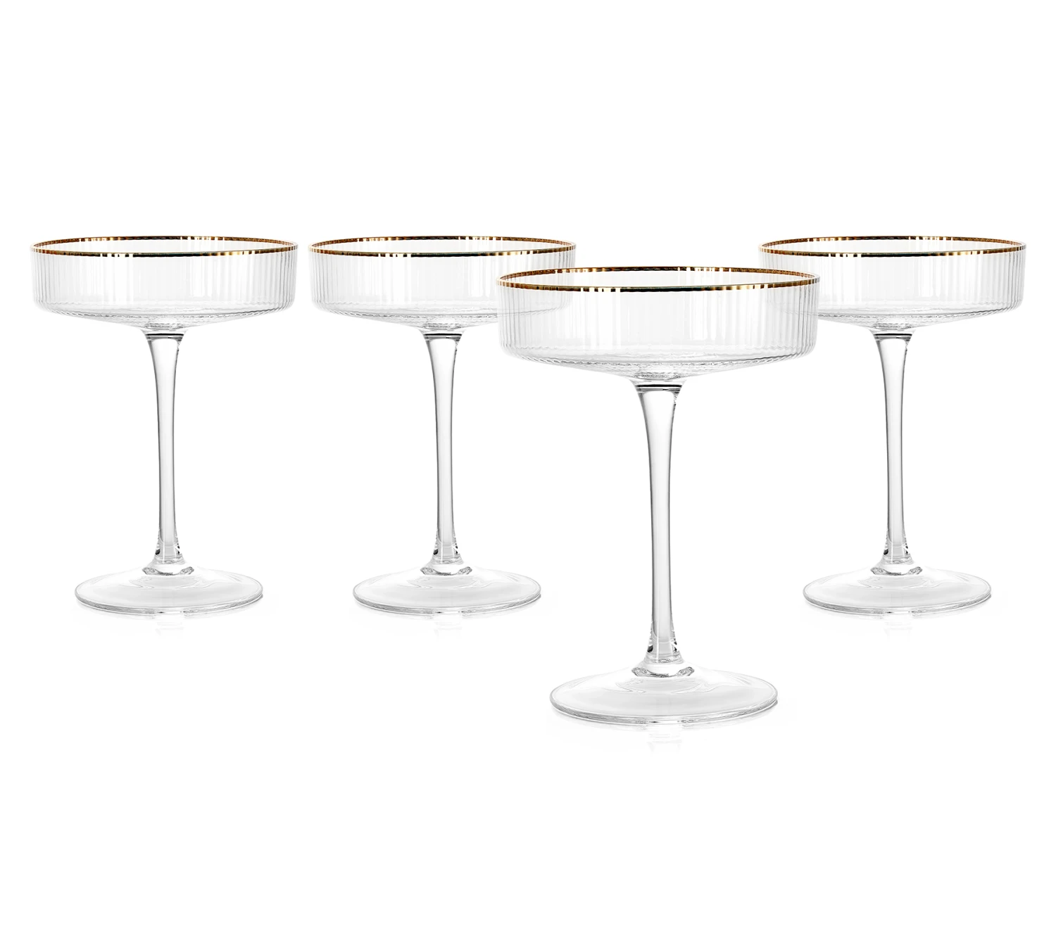 Ribbed Coupe Cocktail Glasses With Gold Rim 8 Oz | Set Of 4 | Classic Manhattan Glasses For Cocktails, Champagne Coupe, Ripple Coupe Glasses, Art Deco Gatsby Vintage, Crystal With Stems