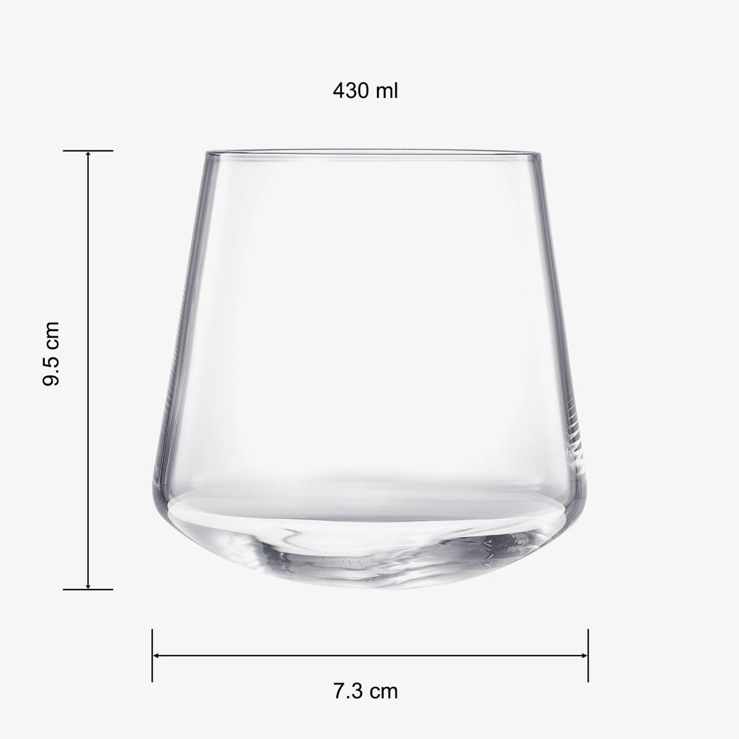 - Introducing the Un-spillable Stemless Wine Glass, now available as a set of two. These extraordinary glasses combine functionality and style to revolutionize your wine or cocktail experience. Standing at 3.75 inches tall with a diameter of 3.75 inches, they have a generous capacity of 13.5 ounces, making them perfect for enjoying your favorite beverages.