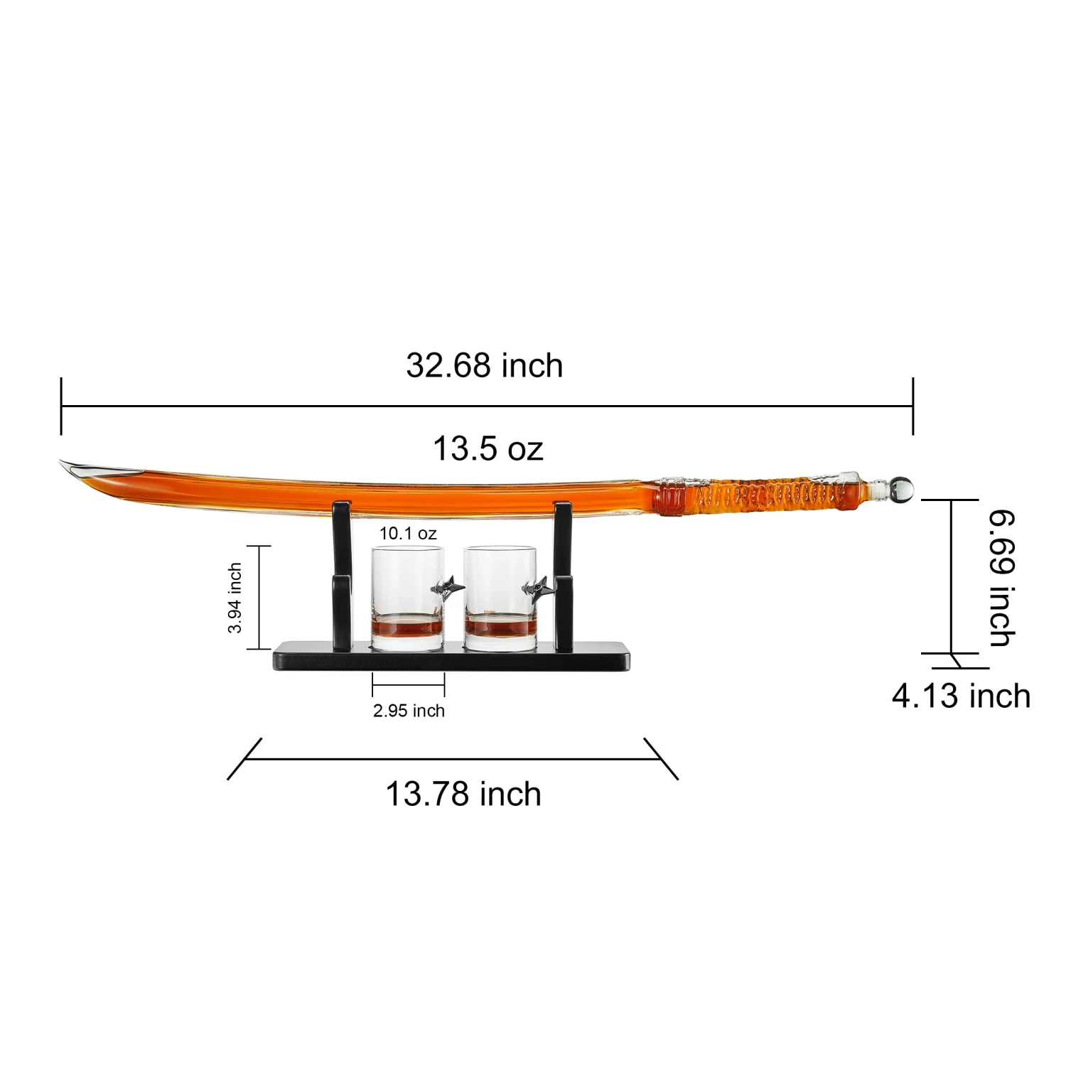 - ELEGANTLY CRAFTED SAMURAI DESIGN: The Samurai Sword Whiskey Decanter is inspired by traditional Japanese katana design, blending cultural aesthetics with barware functionality. With a 13.5 oz capacity, this decanter serves as a unique piece for storing and displaying scotch, bourbon, or whiskey. Its sleek shape and intricate details make it a standout addition to any bar setup, appealing to anime fans, collectors, and Japanese decor enthusiasts alike.