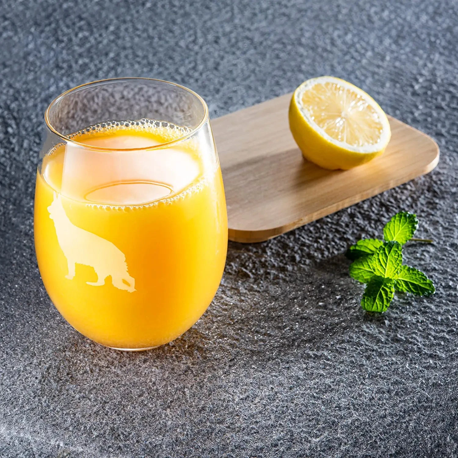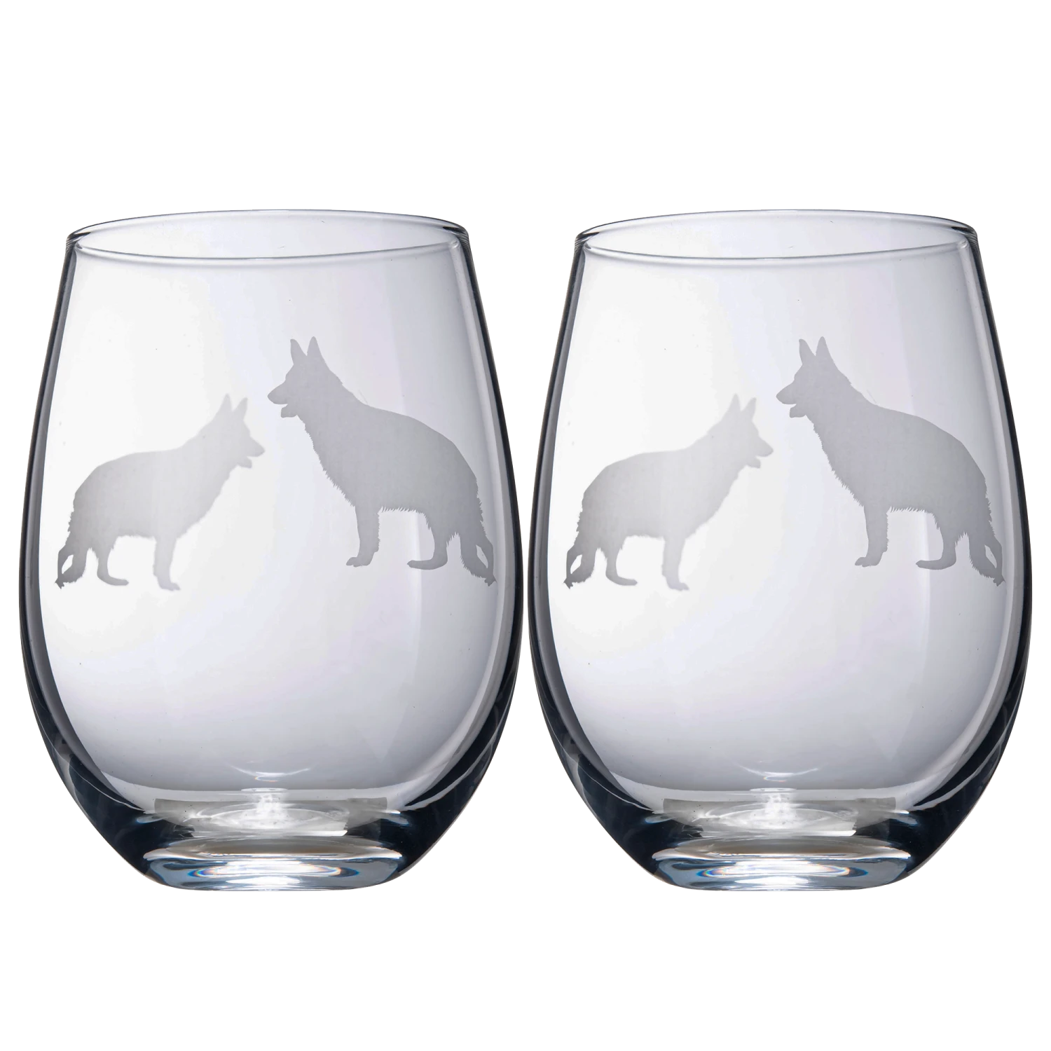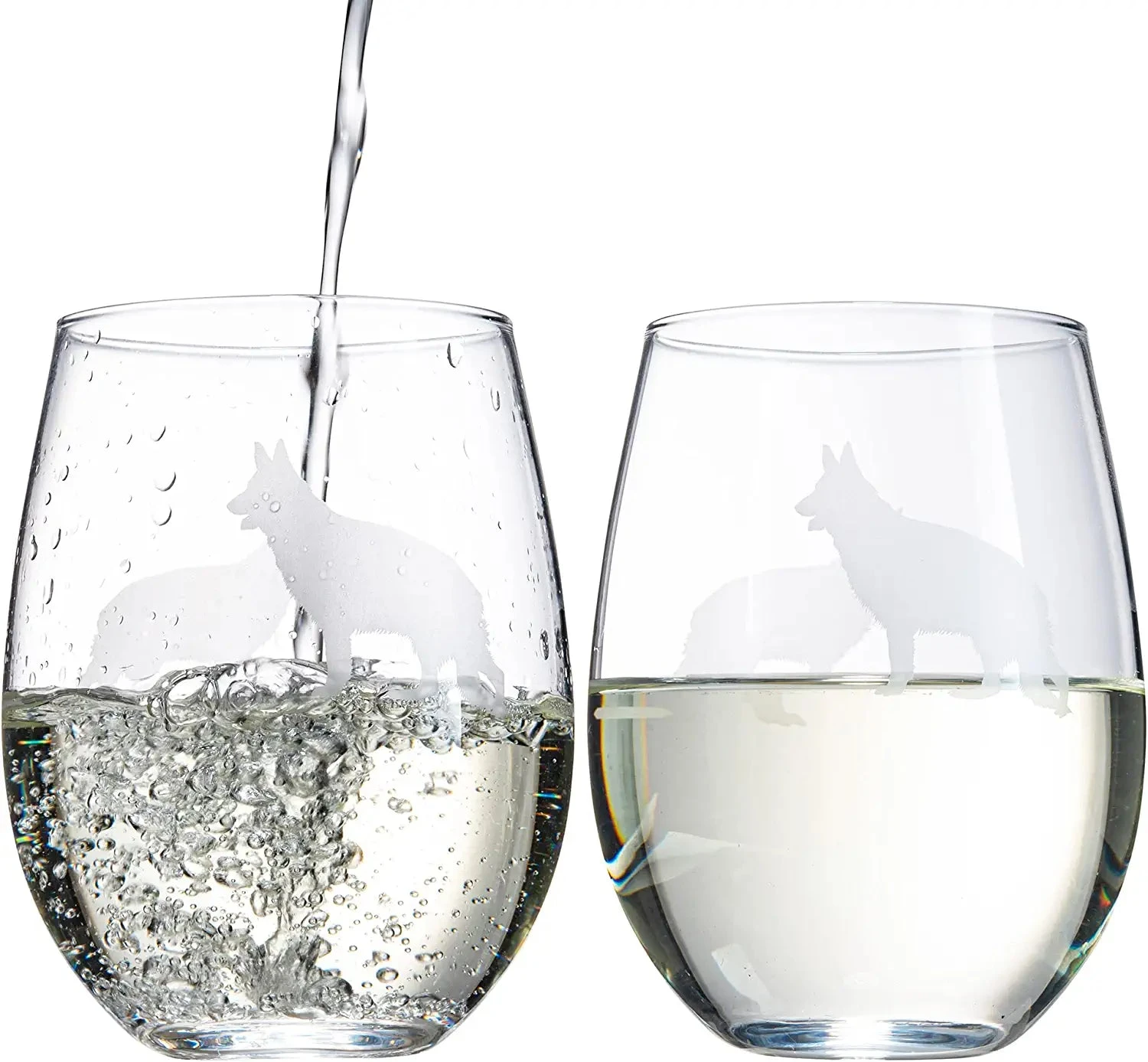 - Our adorable stemless wine glass set is a must-have for any dog lover! A great gift for any dog lover! Give the gift of class, love and a good time this holiday season with these beautifully crafted glasses. These German Shepard stemless wine glasses are the perfect addition to anyone’s bar or kitchen. Featuring a classic silhouette and iconic face, what better way to celebrate your favorite breed?