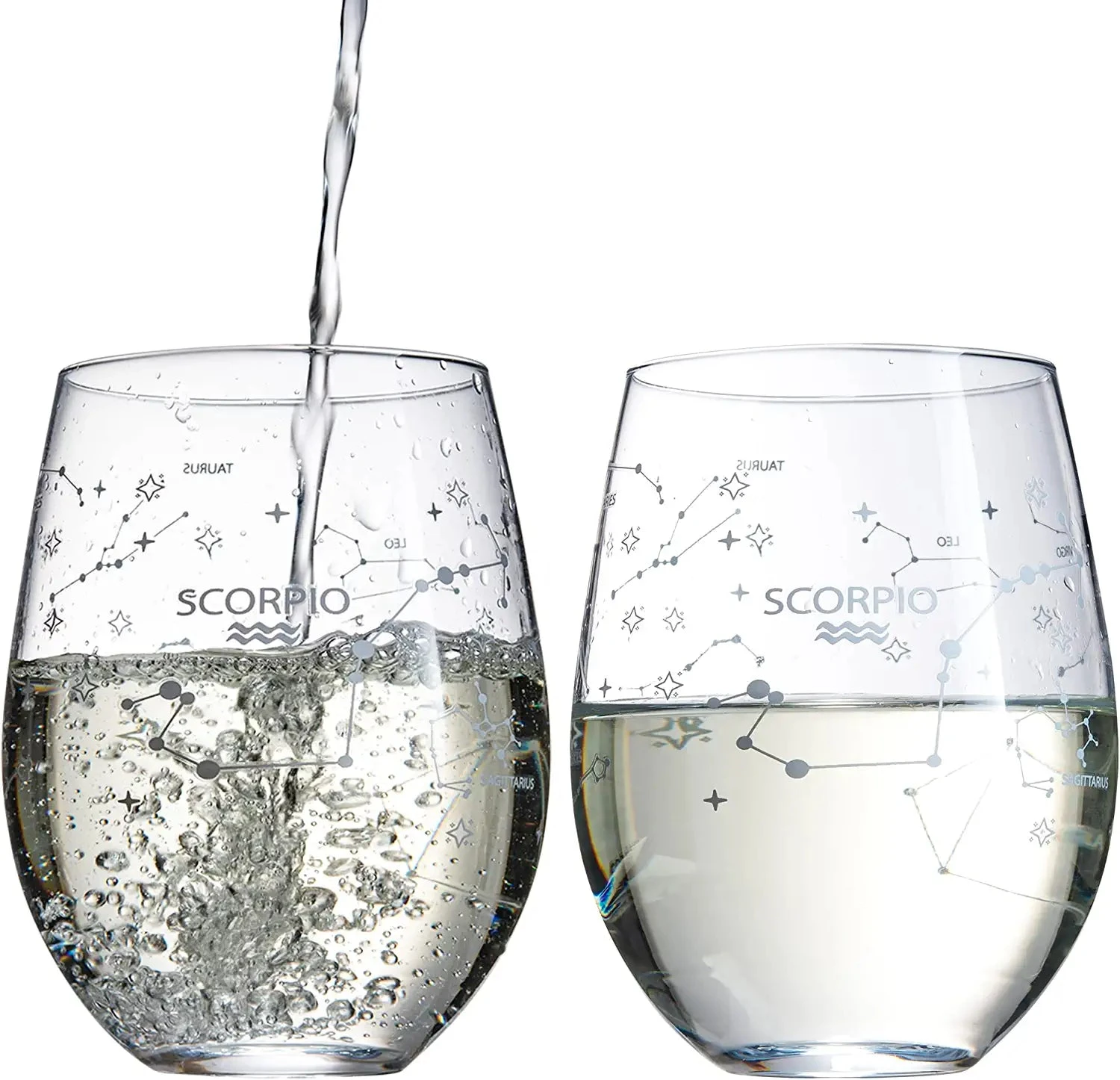 - A great gift for you, your family and friends! Decorate your bar with our unique constellation wine glasses. These unique glasses are perfect for Zodiac, Wine and Astrology lovers! A great gift item for any occasion! These glasses are designed to be perfect for your special wine, champagne, juice or other beverage! Each glass features a unique design clearly etched on each glass to create beautiful astrological signs. A great gift for anyone who loves astrology or as a housewarming gift!