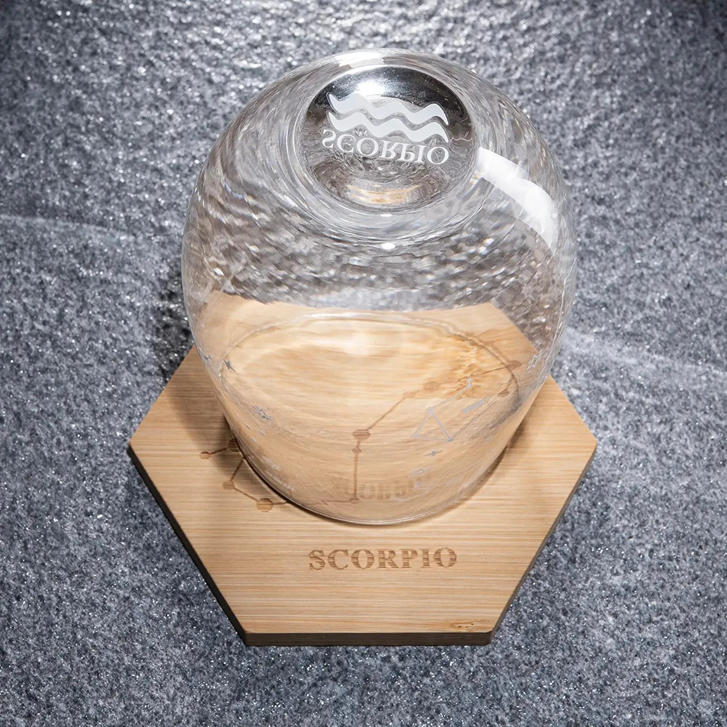 Set Of 2 Zodiac Sign Wine Glasses With 2 Wooden Coasters By The Wine Savant – Astrology Drinking Glass Set With Etched Constellation Tumblers For Juice, Water Home Bar Horoscope Gifts 18oz (Scorpio)