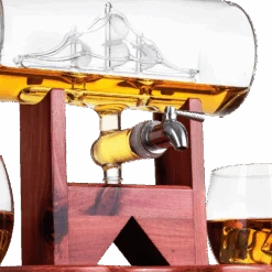 Whiskey & Wine Decanter Gifts For Men & Dad, Ship Decanter 1000ml, Set With 4 Globe Drinking Glasses – Cool Liquor Dispenser For Home Bar Unique Birthday Gift Ideas From Wife, Daughter, Son Present