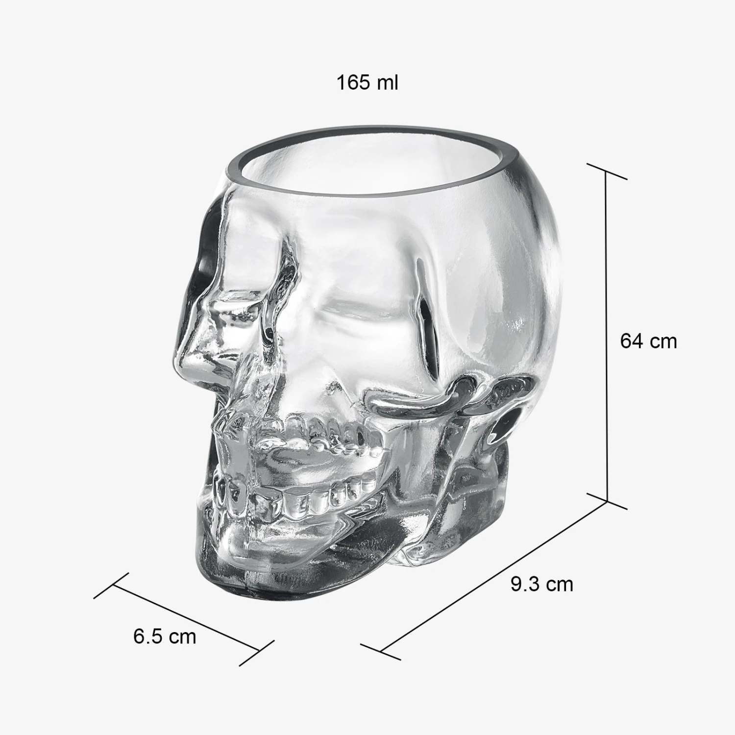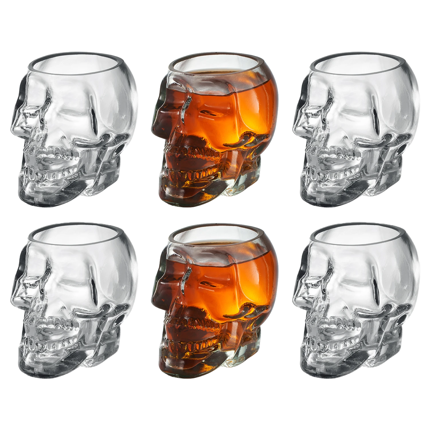 - Add eerie yet whimsical style to your barware collection with these skull shot glasses from The Wine Savant. This set of six is made of clear glass in the shape of a human skull with space to hold nearly 3 ounces of liquid, making it perfect for serving shots of spirits. Experience the next level of drinking with these 3oz skull head face-shaped whiskey shot glasses.