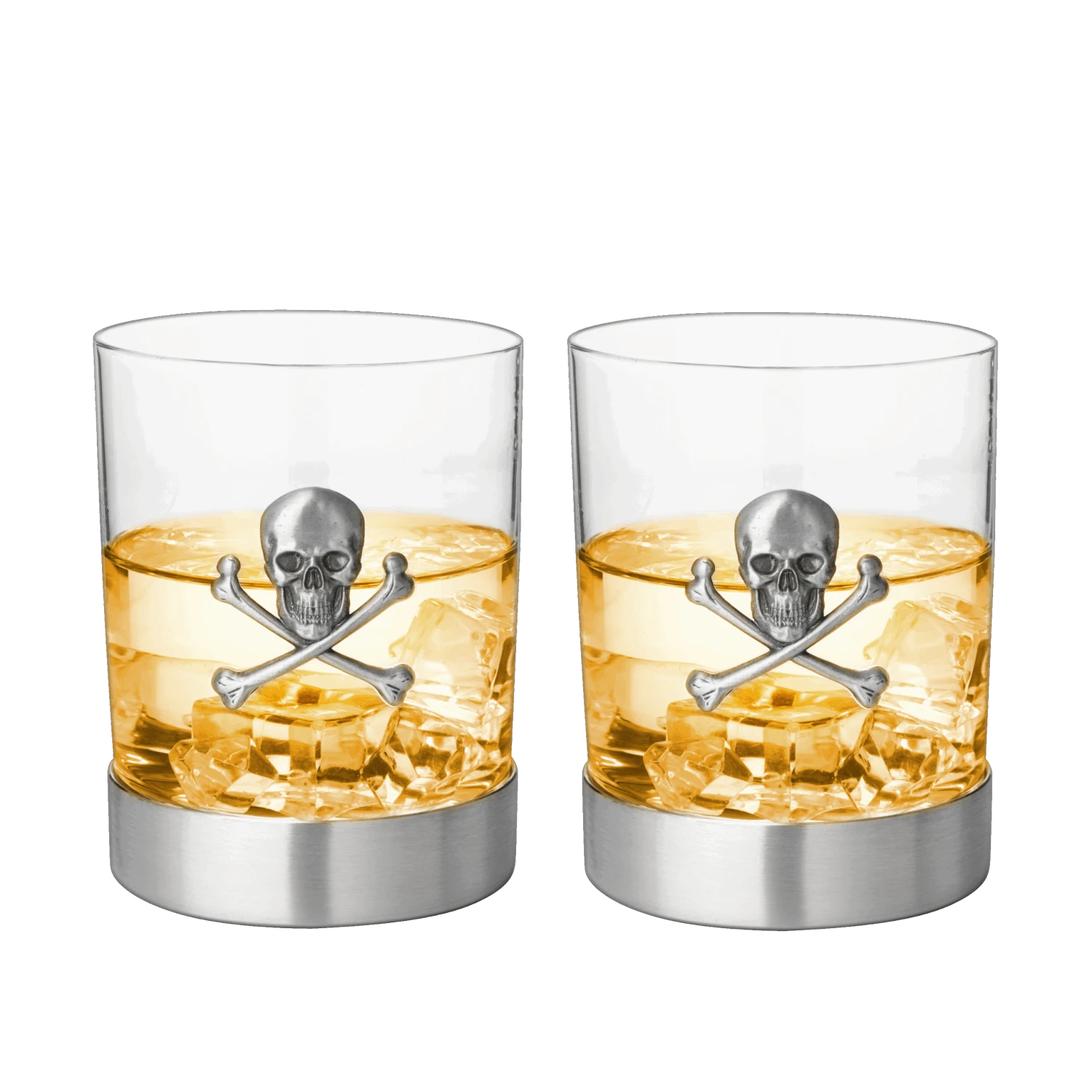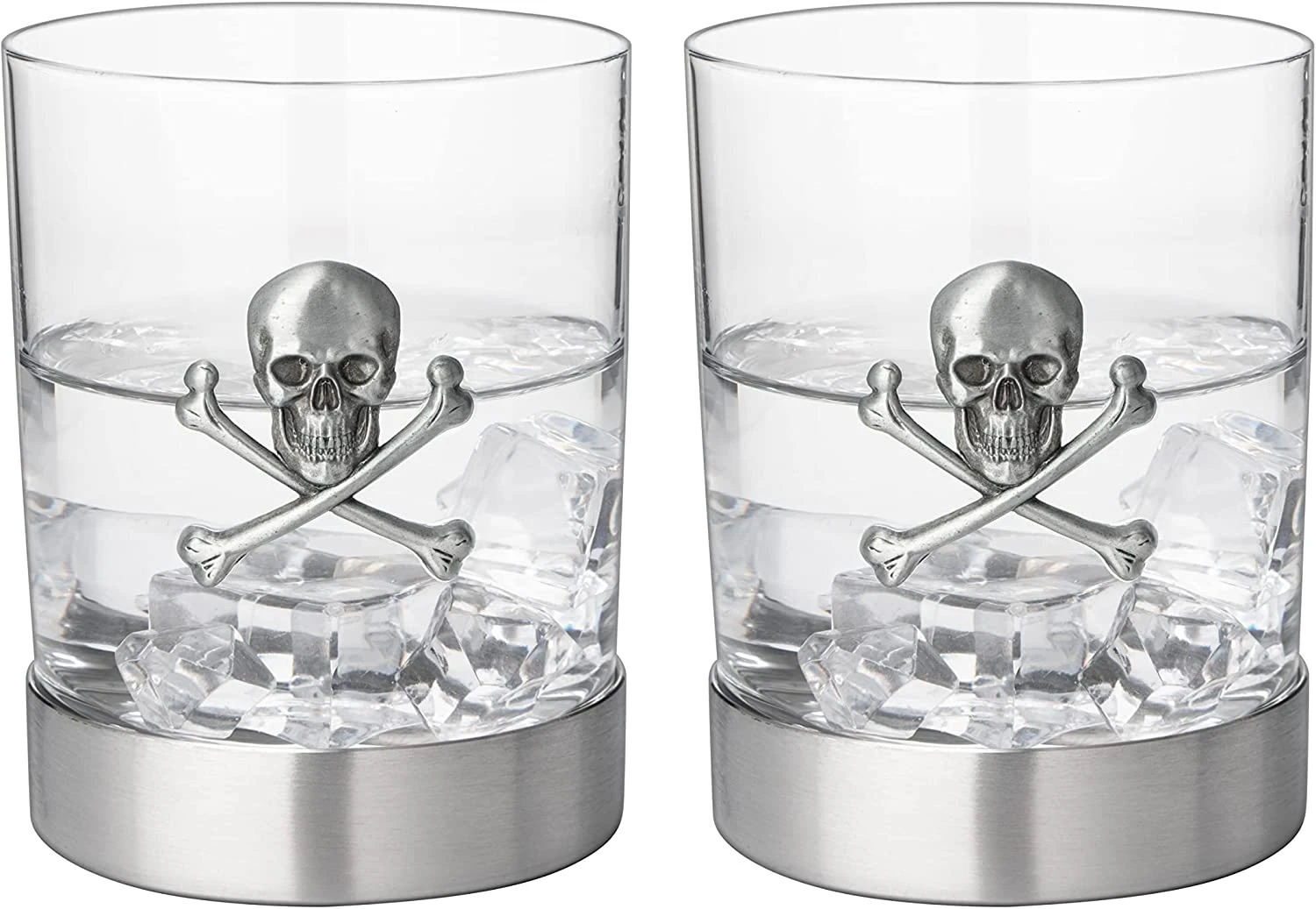 - THE NEW & UNIQUE SKULL OLD FASHIONED WHISKEY GLASSES: The Skull Old Fashioned Whiskey Glasses Set of 2 is unlike any other whiskey glass currently on the market. It features a unique skull and bones design raised and centered in the middle of the glasses. The skull design is perfect for the Halloween lover who enjoys a nice cold glass of whiskey after a long day.