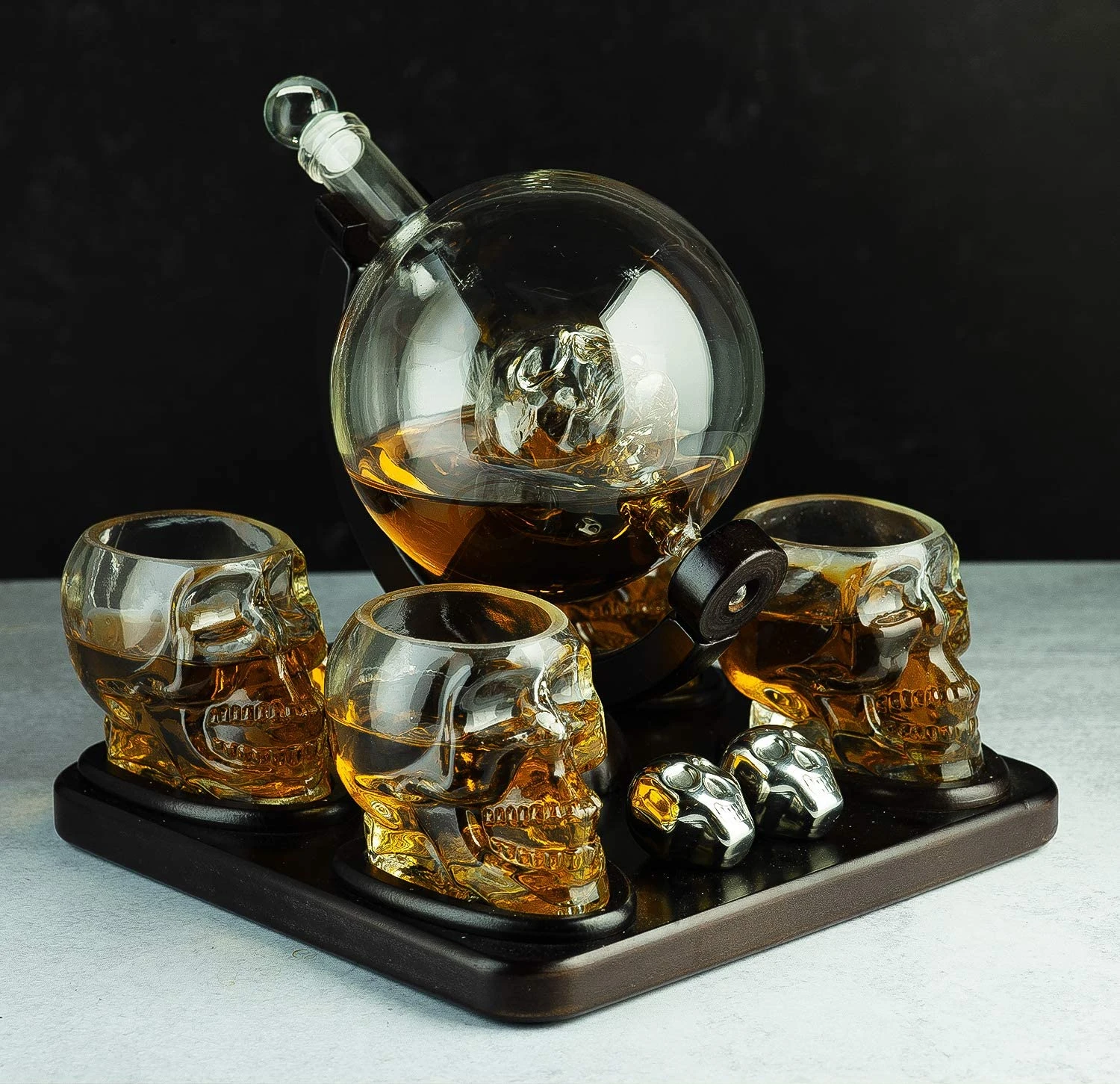 - GOOD FOR MANY DRINKS AND ANY BAR: This set is perfect for Halloween, pirate-themed parties, or bachelor parties. Crafted of fine crystal for timeless shine and durability, guests won’t be able to resist talking about this set long after they’re done drinking. Great for vodka, liquor, whiskey, and more, this is one set that will make you stand out