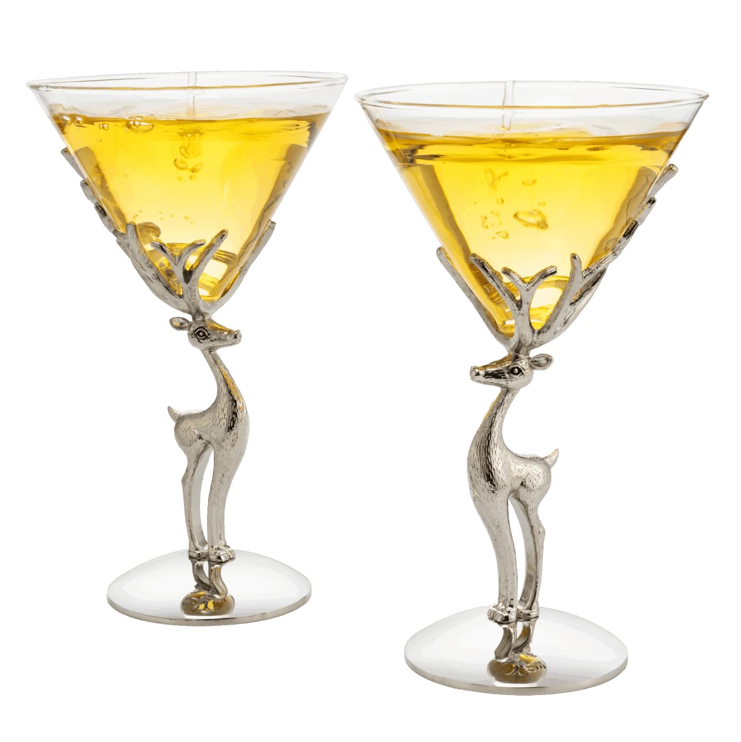 - Your hunt for the perfect wine glasses is over. These gorgeous and ornate stag wine glasses capture the elegance and luxury of the beautiful stag. Recreate the feeling of a seeing a stag and toast with friends and family using this set of two silver-toned glasses. The stag wine glass set is a must have drinkware accessory for your wine adventure. Perfectly displayed in your bar, dining area, or home, these are the most unique wine glass you will find. It makes a great gift for all occasions