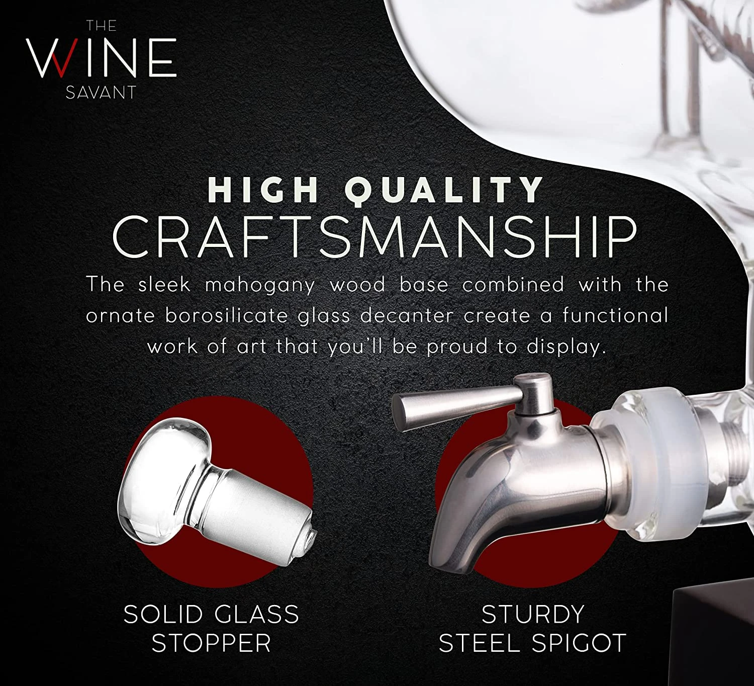 - DISPENSE WITH PRECISION – Unlike traditional whiskey decanters that you lift and pour to serve, this exquisite decanter has a spout with a valve that turns to accurately dispense the precise amount of whiskey, bourbon, brandy, vodka, gin, rum, or tequila desired.
