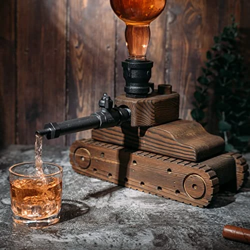 - The Wine Savant presents a high quality wooden tank decanter set revolutionized for the world of spirits. It holds up a full bottle of liquor. Serve up your favorite wine, whiskey, rum, or any liquor & drink in style with this unique gift for any occasion. Makes great gifts for men or women, or for military veterans or law enforcement remembrance gifts.