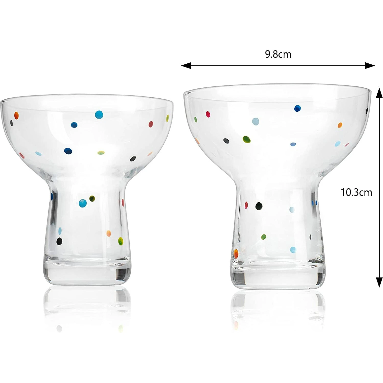 The Wine Savant Hand Blown Margarita Glass – Luxury Hand Blown Confetti Margarita, Martini & Champagne Glasses Cinco De Mayo, Hand Blown Glass – Large Party (Polka Dot Vintage Design)