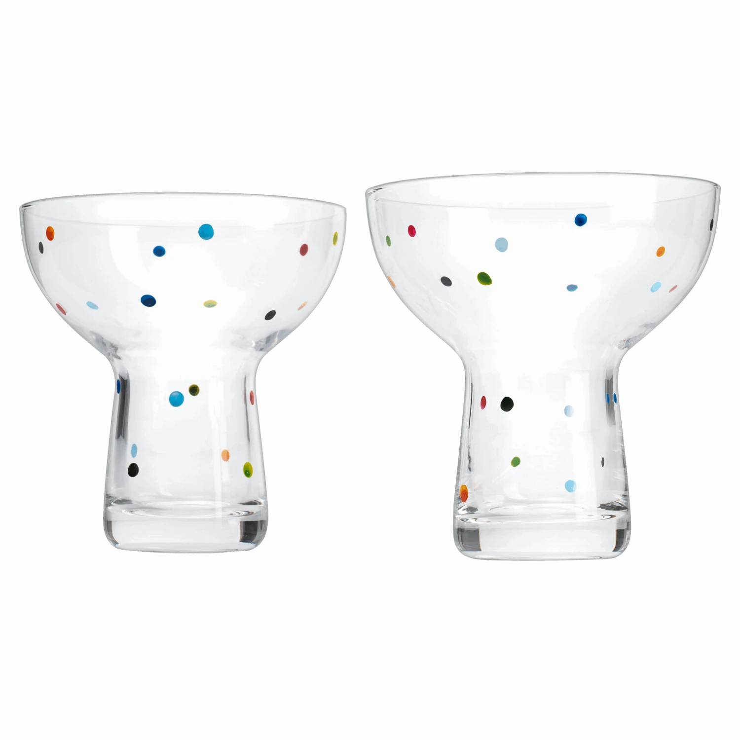 - These hand-blown, colorful glasses feature a timeless confetti design. Handcrafted by skilled artisans, these margarita glasses will be a true conversation starter.