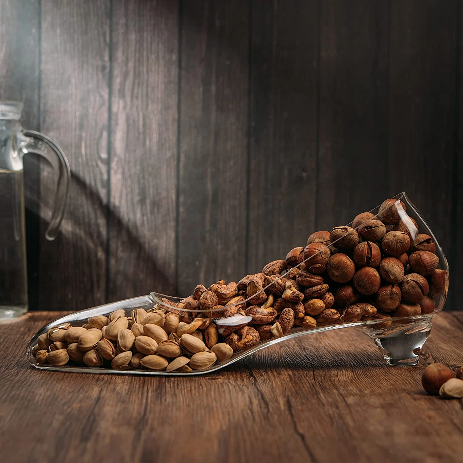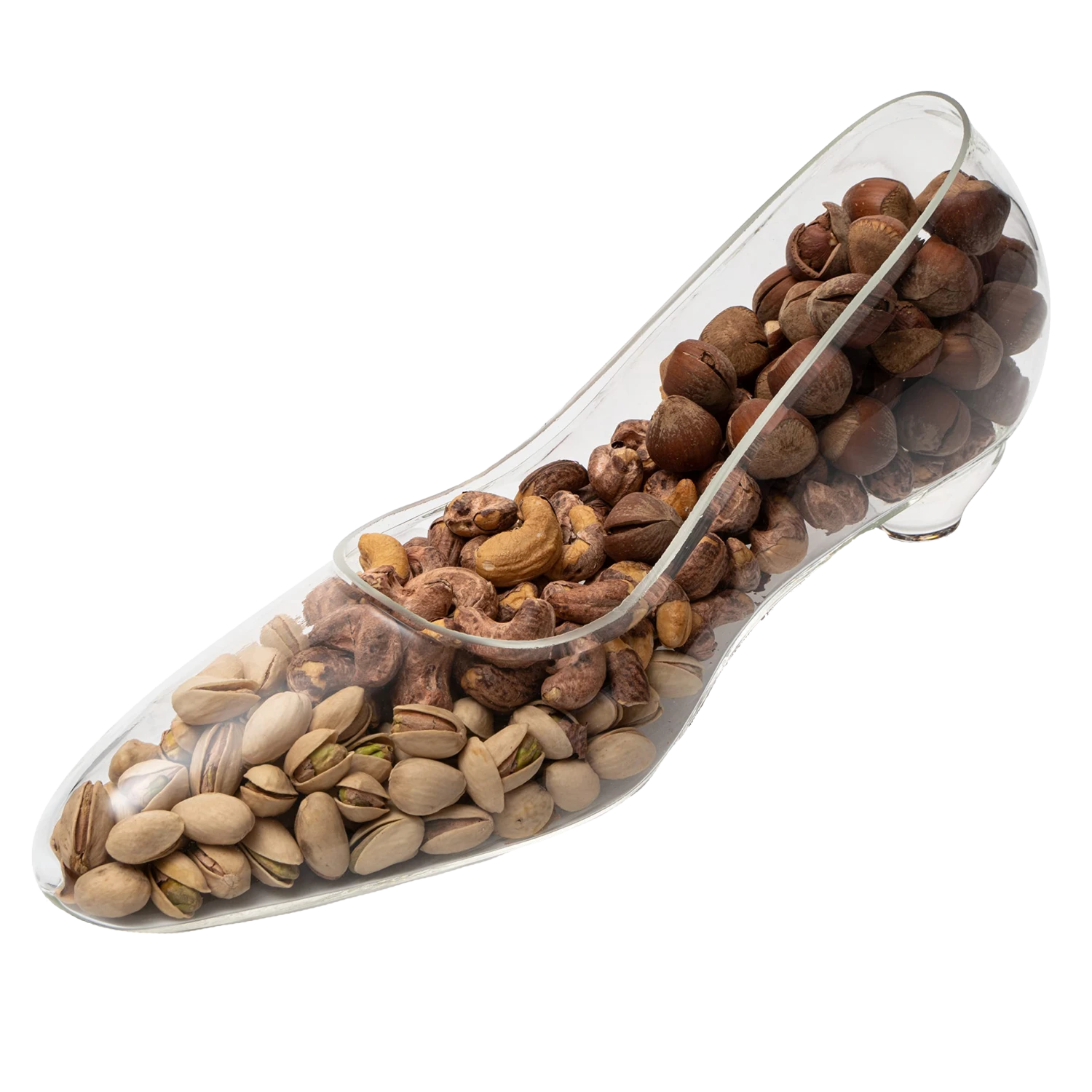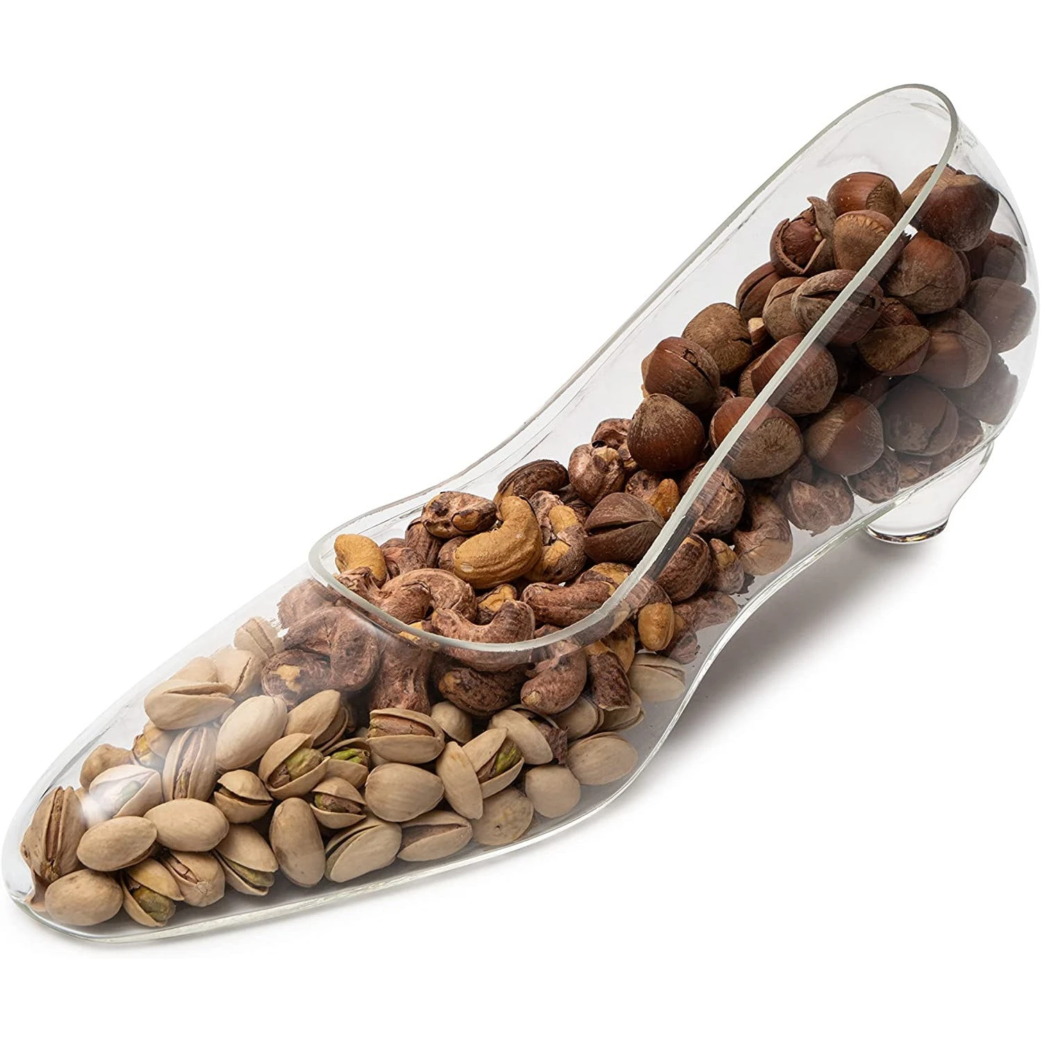 - Our Stiletto Nut Bowl is a unique conversation piece with a sculpted heel, hand-made from glass and designed to house your favorite snack including nuts, trail mix, pistachios, candy and more. These bowls are perfect for home kitchen counters and make great wedding gifts! Measuring at 6″ in height, 13″ in length. This is a handcrafted stiletto glass from The Wine Savant.