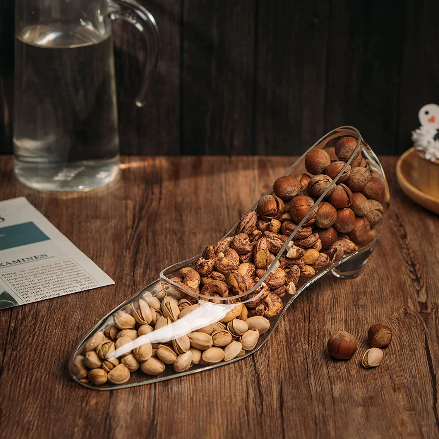 - Introducing a unique nut bowl for your favorite nuts. The Stiletto Nut Bowl is not your average nut bowl, but rather an artful compliment to any home. It is one of a kind and would be the ideal gift for that special someone or even yourself! The Stiletto is for the fashionable woman who wants to add more luxury to her home decor. Handcrafted from borosilicate, this bowl offers a soft and elegant glow that catches everyone’s attention.