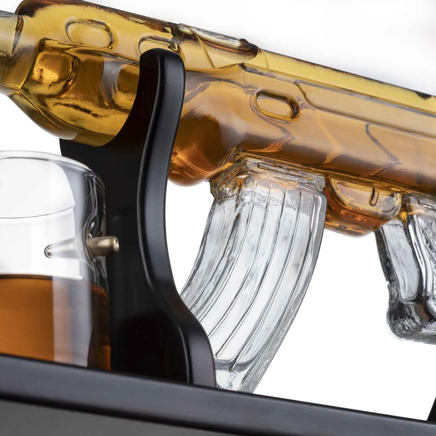 (UAE ONLY) Gun Large Decanter Set Bullet Glasses – Limited Edition Elegant Rifle Gun Whiskey Decanter 22.5″ 1000ml With 4 Bullet Whiskey Glasses And Mohogany Wooden Base By The Wine Savant