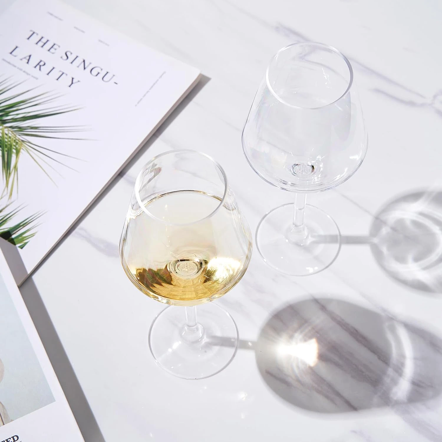 - Each glass in the acrylic wine glass set holds up to 15 ounces of liquid, making them perfect for serving wine, as well as other beverages. The shape of the glass is designed to enhance the flavor and aroma of the wine, ensuring that every sip is a delight for the senses. Whether you’re enjoying a glass of wine with friends or a refreshing iced tea on a hot summer day, the acrylic wine glass set is the perfect choice.