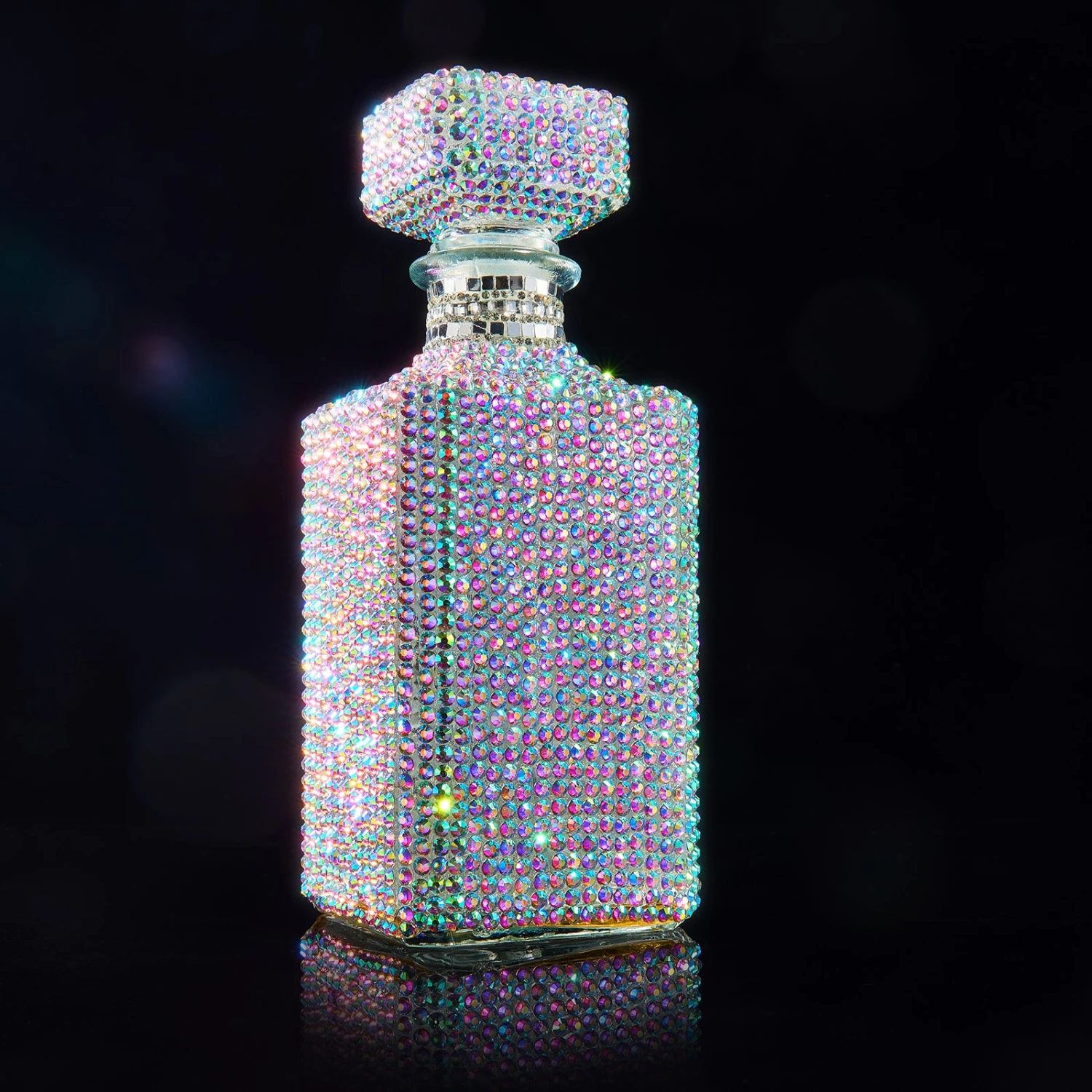 - Introducing the Unique Diamond Rhinestone Decanter, a luxurious 730 mL carafe designed to elevate your spirits collection with a dazzling touch of glamour. Whether you’re serving whiskey, tequila, wine, bourbon, or scotch, this stunning decanter is the perfect way to showcase your favorite beverages. Adorned with sparkling silver rhinestones that cover the entire surface, this decanter adds a sense of opulence to any home bar or dining room.