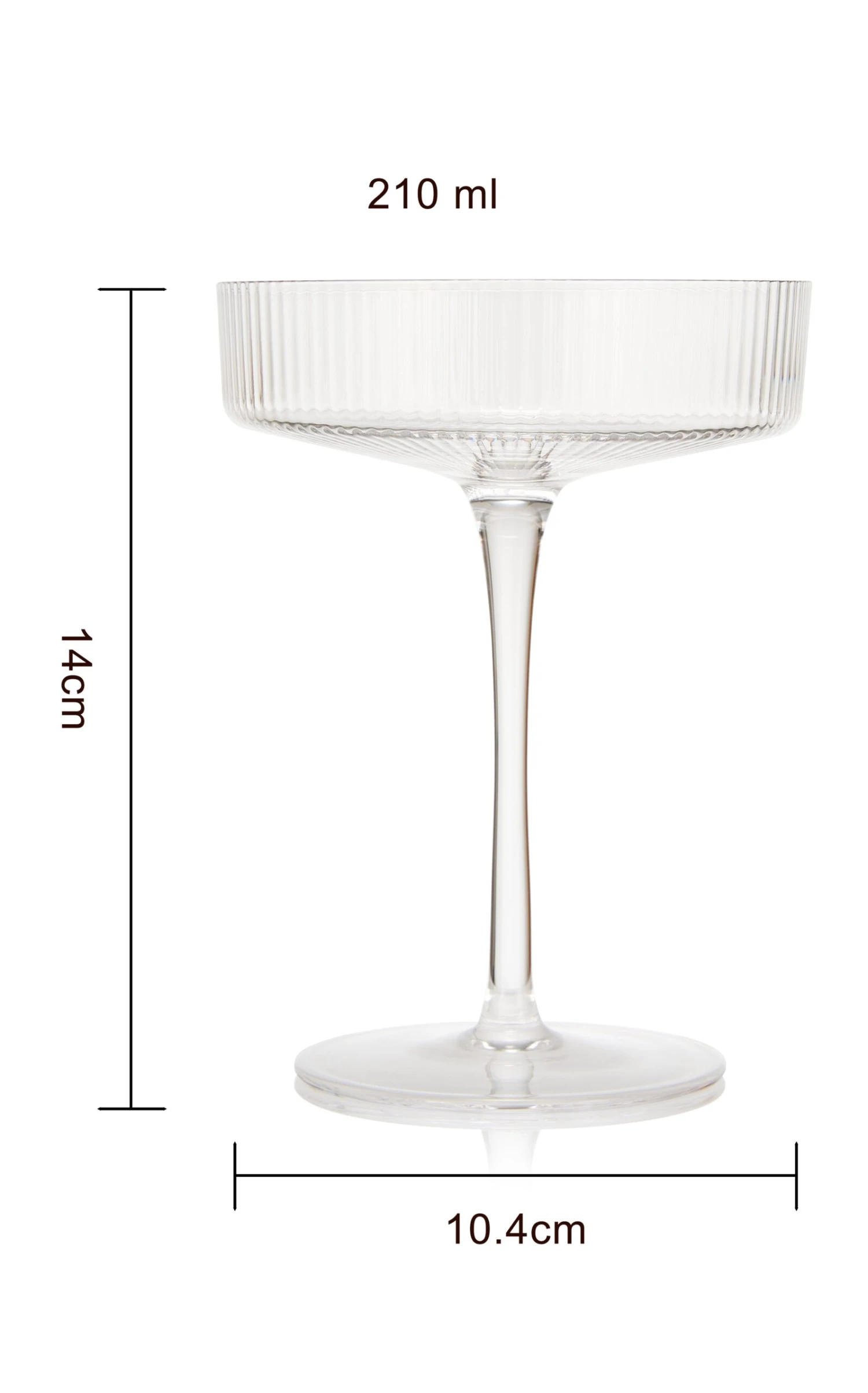 - The Wine Savant Ripple Ribbed Coupe Glasses are perfect for any bar, home, or wine tasting event. Our coupe glasses are elegantly simple with a refined shape. This oversize glass allows more room for shaking & stirring, making it perfect for creative cocktail craft, enjoying champagne, or even old fashioned drinks without leaving any room on the rim. Each glass is mouth-blown & handcrafted using traditional techniques, adding unique character to each piece.