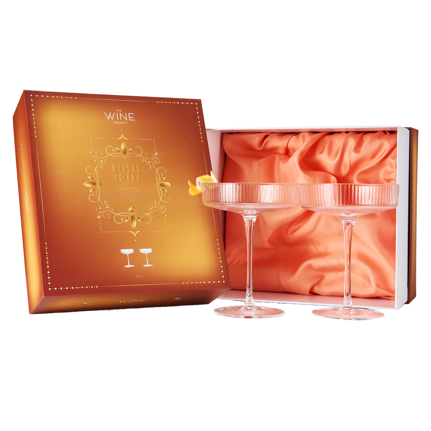 Vintage Art Deco Coupe Glasses Ribbed Coupe Cocktail Glasses 8 Oz | Set Of 2 | Crystal Cocktail Glassware For Champagne Classic Manhattan Goblet For Cocktails , Ripple Coupe Glassware – Gift Box