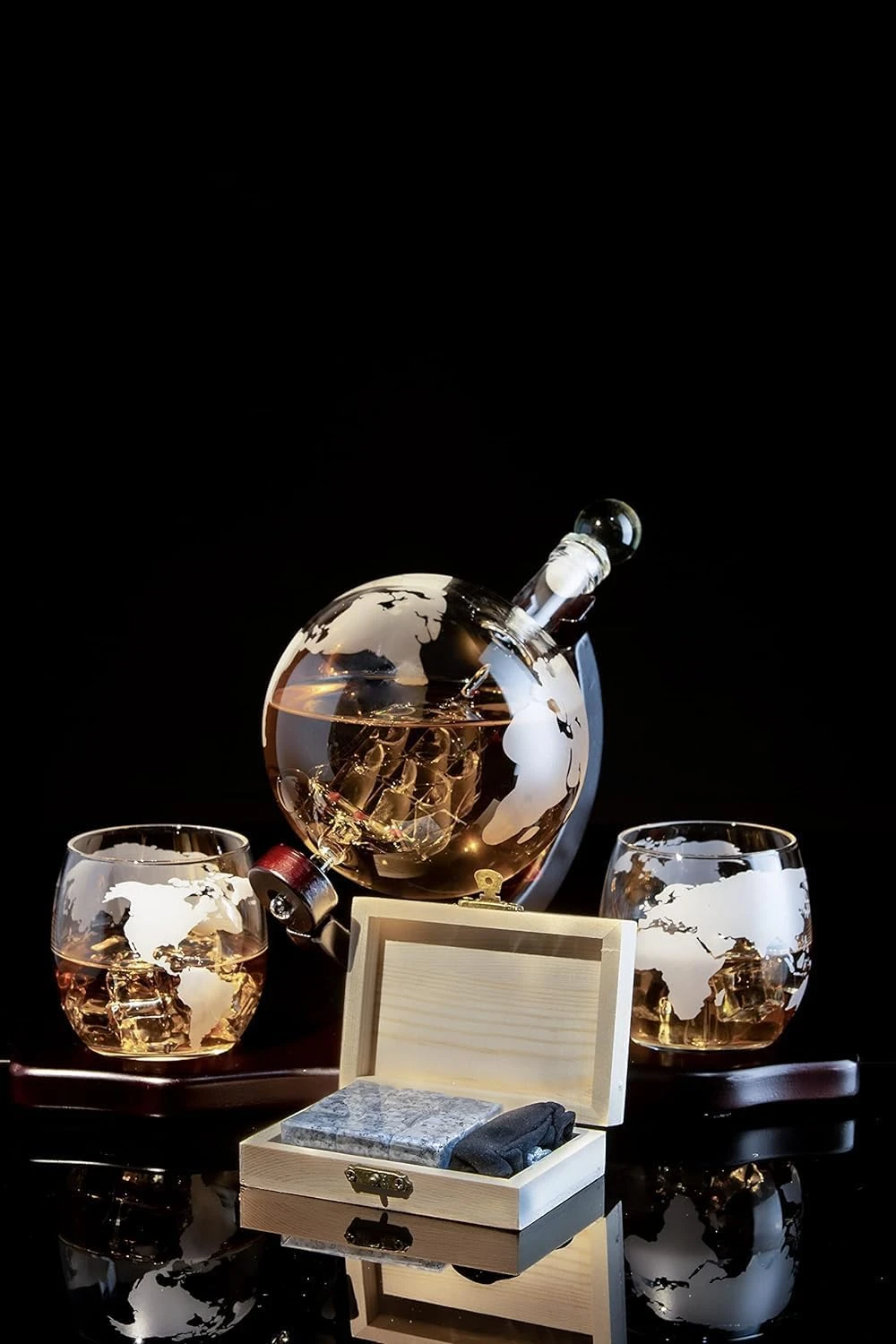 - IMPRESS WITH THIS TRULY UNIQUE GIFT: This decanter will make anyone admire the artfully detailed antique ship, beautifully set in the etched globe decanter & whiskey stones