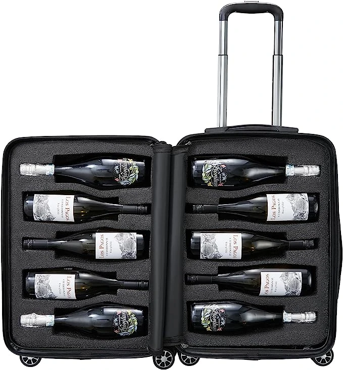- With the Wine Bottle Suitcase, you no longer have to worry about leaving your favorite wines behind when you travel. This innovative and stylish suitcase ensures that your wine collection is always within reach. So pack your bags, check in your Wine Bottle Suitcase, and embark on your next wine-filled adventure with ease and peace of mind. Cheers to traveling with your favorite bottles!