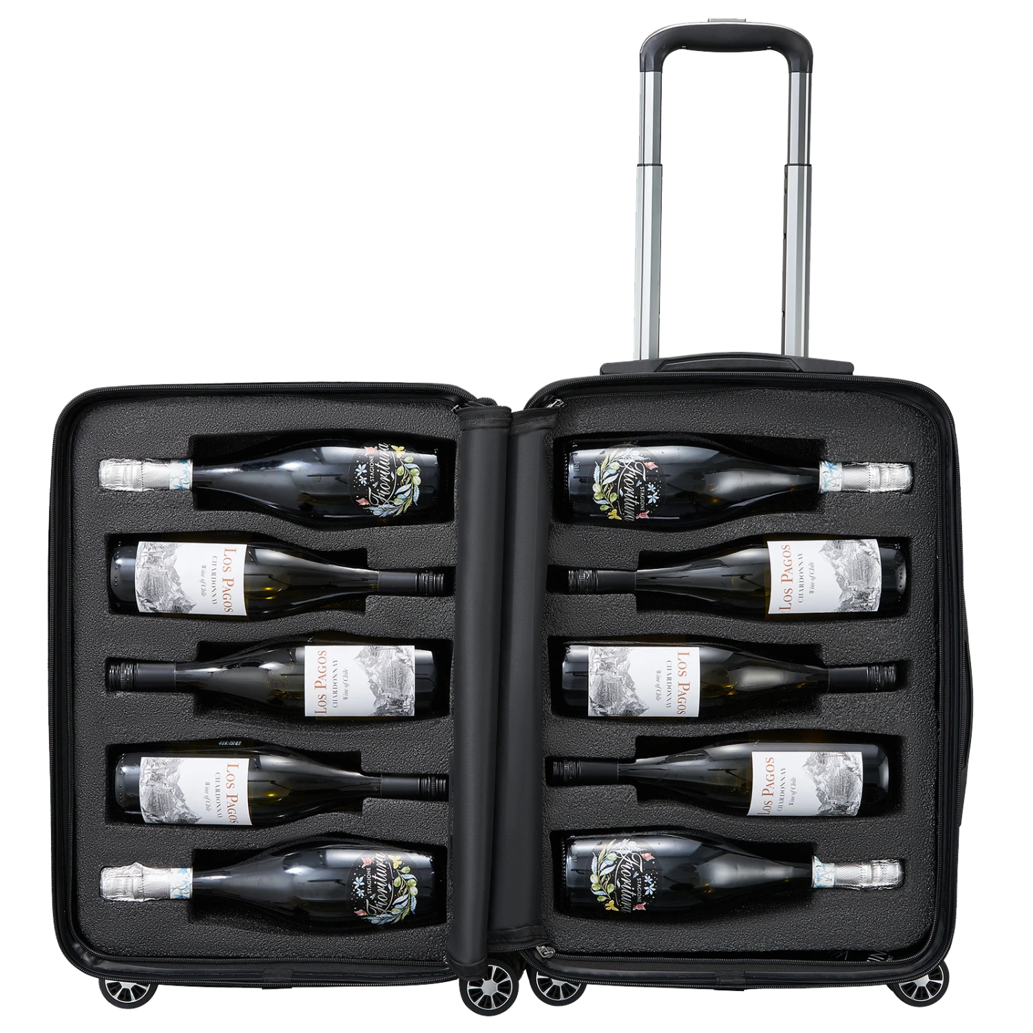 Wine Bottle Suitcase | Holds 10 Standard 750 ML Size Bottles | Universal Airplane Luggage Case, TSA Approved Wheeled Bag For Professionals And Consumers, Gift For Wine Lovers & Connoisseurs (24 IN)