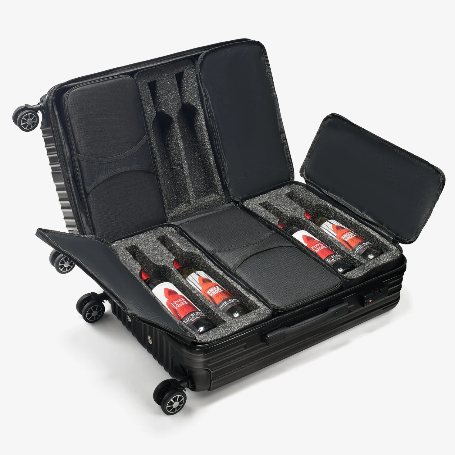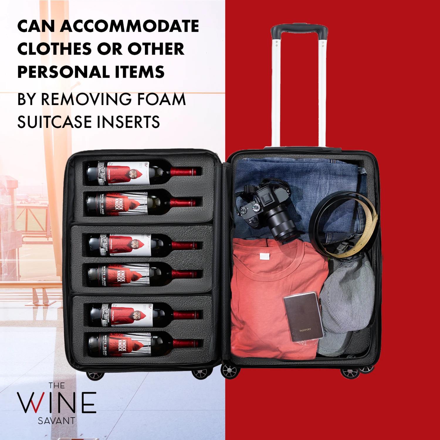 - With the Wine Bottle Suitcase, you no longer have to worry about leaving your favorite wines behind when you travel. This innovative and stylish suitcase ensures that your wine collection is always within reach. So pack your bags, check in your Wine Bottle Suitcase, and embark on your next wine-filled adventure with ease and peace of mind. Cheers to traveling with your favorite bottles!
