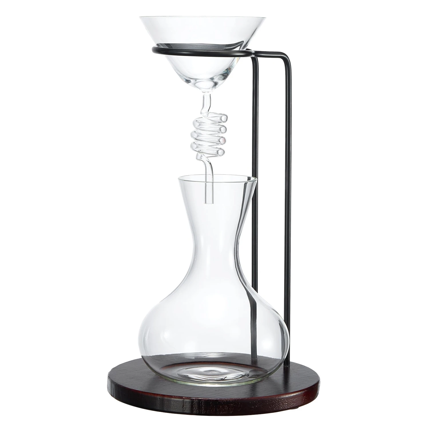 - The Dual Aerator System sets this decanter apart from traditional carafes, as it offers two stages of aeration that significantly improve the flavor profile of your wine or whisky. As the liquid flows through both the upper and lower aerators, it is exposed to just the right amount of oxygen, allowing the aromas to fully develop and the taste to become smoother and more refined. This process ensures that your wine is perfectly aerated in minutes, enhancing its complexity and bringing out its full potential.